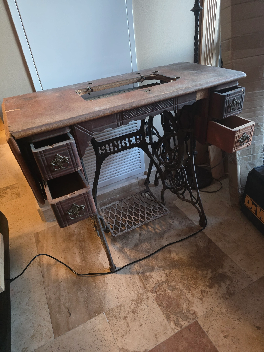 Singer sewing machine table with 4 drawers, no machine as per photos. pickup in etobicoke, first come first serve