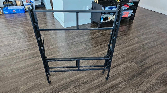 13Portable and space-saving metal foldable bed, ideal for small rooms or guest rooms. Easy to set up and fold away. Sturdy metal frame. Designed for one person. Simple to assemble and disassemble. Gently used, from a pet-free and smoke-free environment. Price: $100 (bought for $130). Pickup only at Metrotown station.