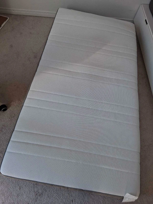 18This is a single bed frame and mattress. Great condition. Perfect for a child's room or a guest room. Get ready for a fantastic night's sleep with this dynamic duo! If the ad's still up, it's still up for grabs!