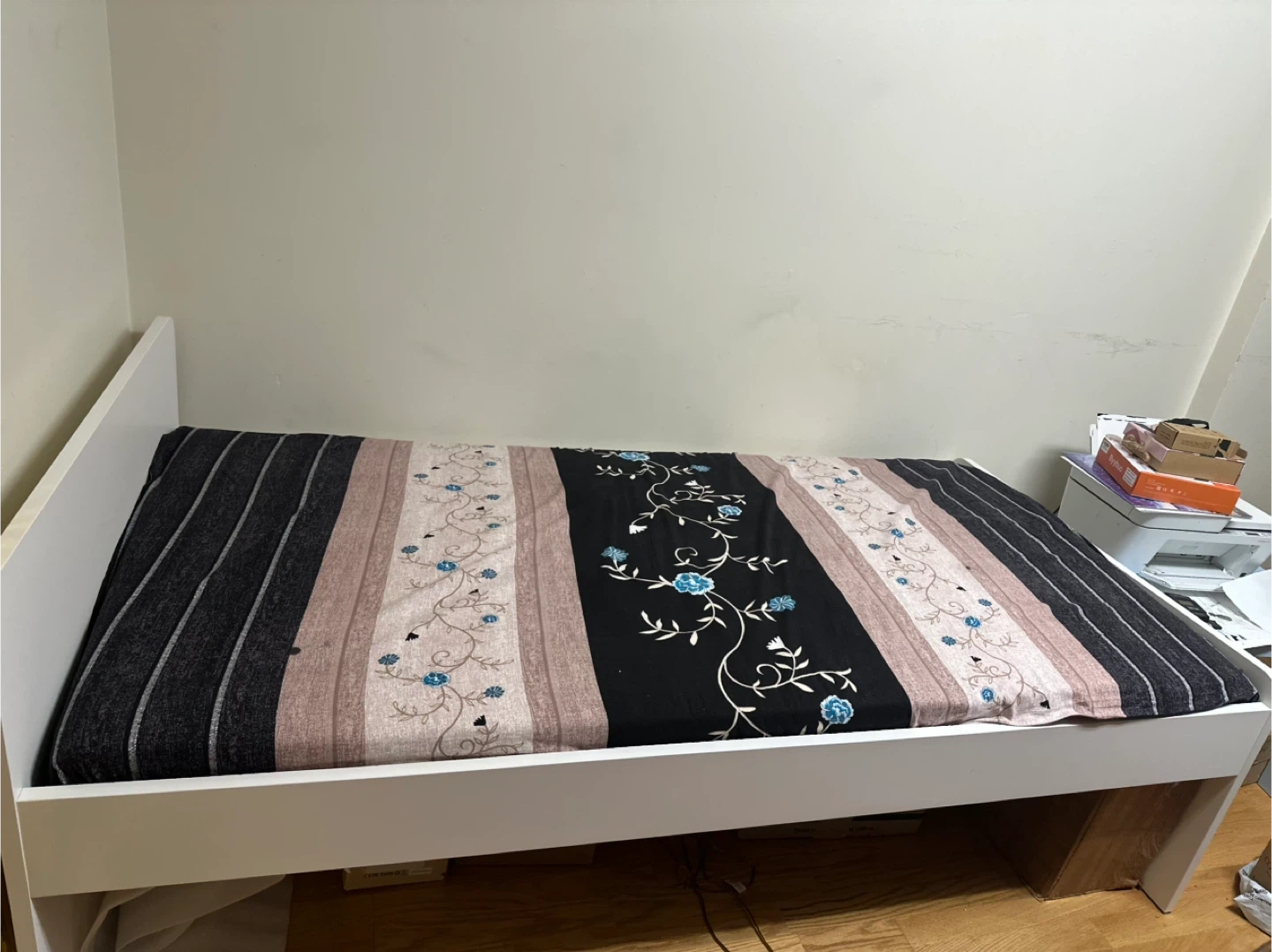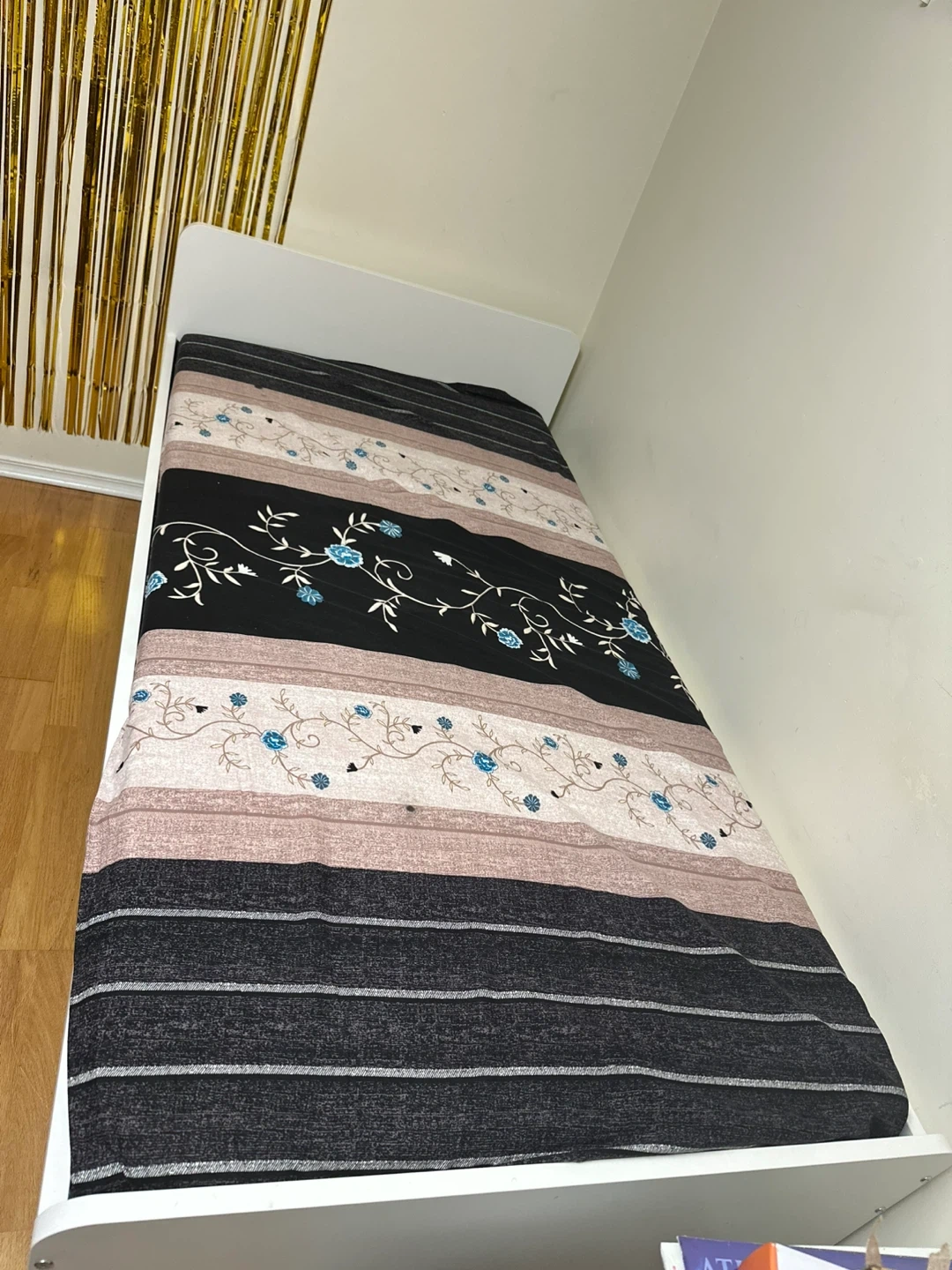 Selling a single bed frame, complete with a mattress! It's in great shape and ready for a new home. The mattress features a pretty floral pattern. Perfect for a small space or a guest room