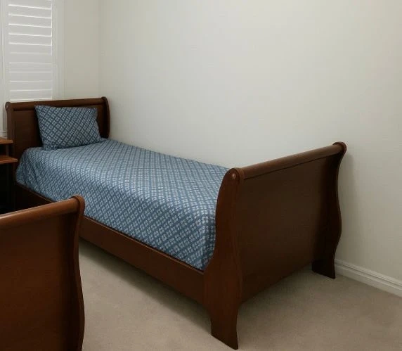 10Selling a single bed frame, complete without a mattress! It's in great shape and ready for a new home. The bed frame is a lovely brown wood, from Leons' Perfect for a kid's room or a guest room