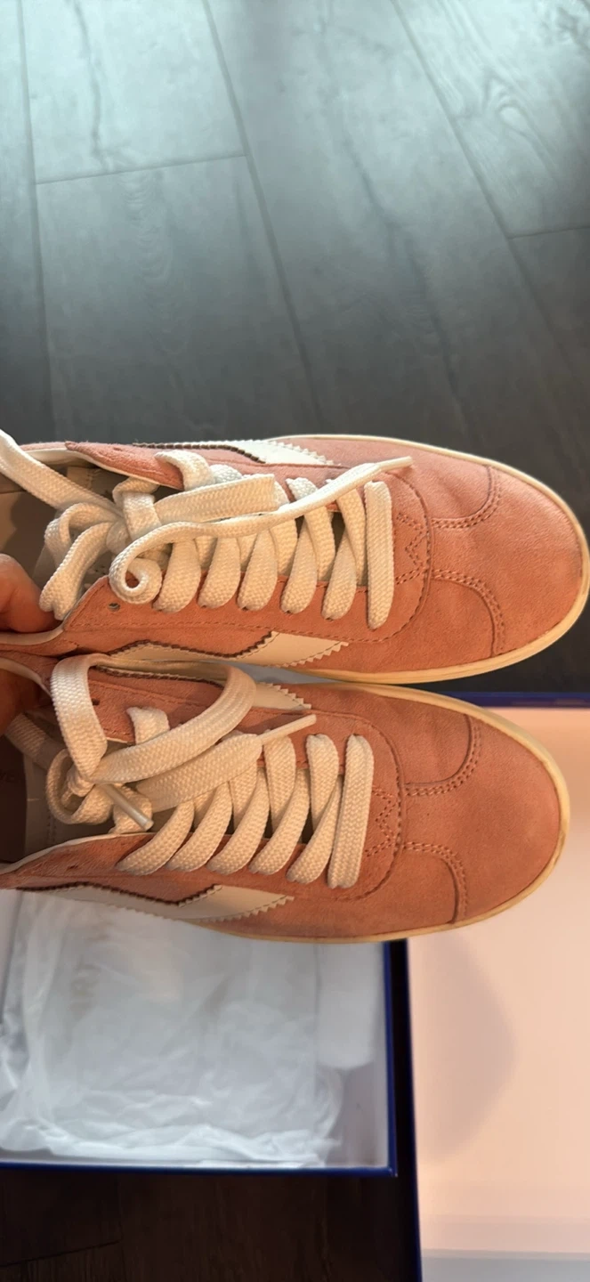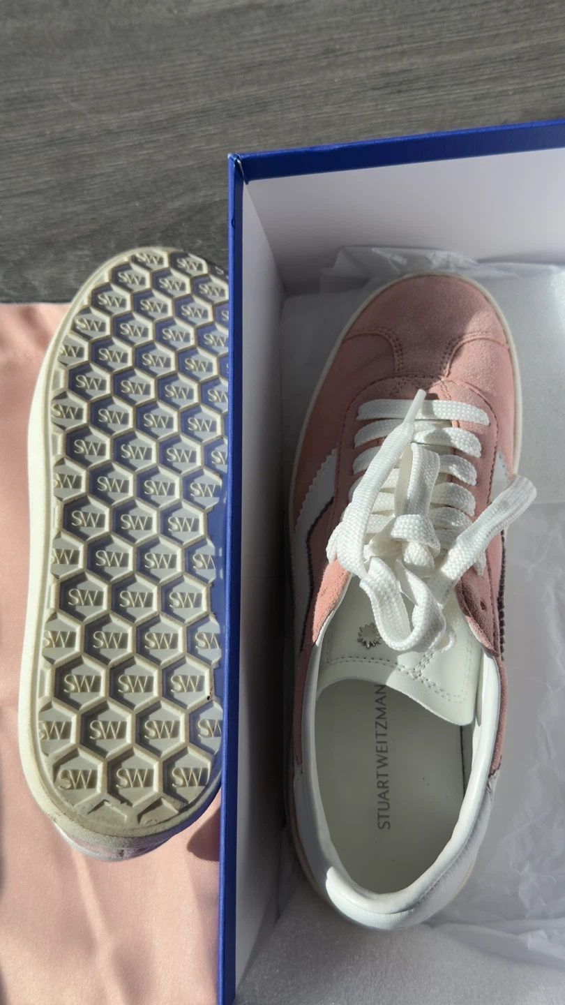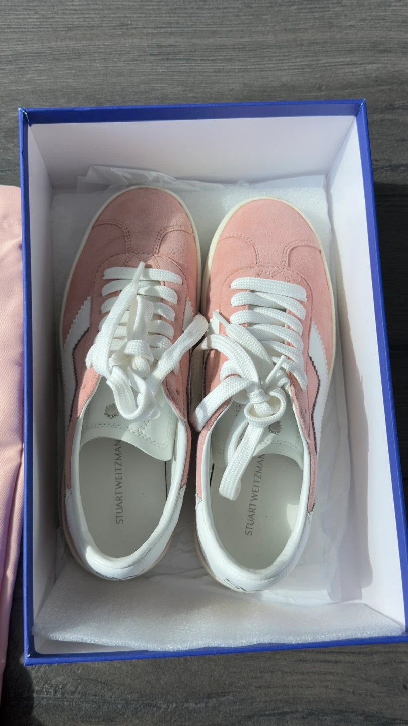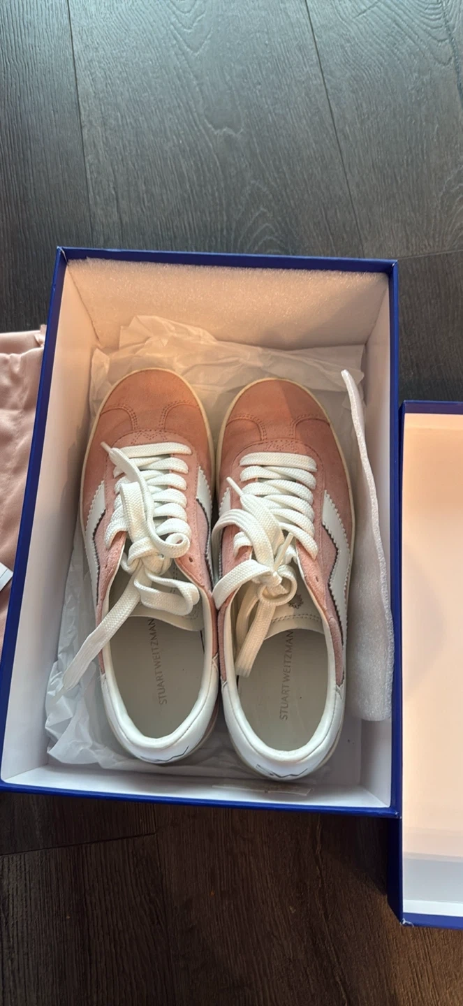 Stuart Weitzman pink suede sneakers in excellent condition! They come with the original box and dust bag. These stylish sneakers are perfect for adding a touch of colour to your casual outfits worn 1 time
