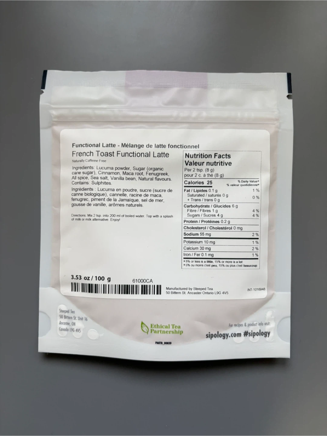785Sipology functional latte French Toast 100g / 3.53oz superfoods like lucuma and maca root New in package, never opened Drink hot or cold Cash preferred or etransfer accepted from verified users Shipping options available Porch pick locations: Markham - Markham Rd & 16th Ave Oshawa - Wilson Rd & Adelaide Ave Pls feel free to ask me any questions