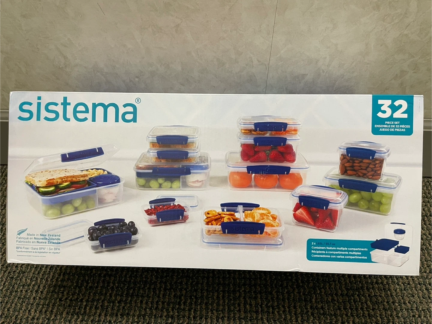 15Selling a brand new Sistema 32-piece food storage container set! It features multiple compartments to keep your food fresh and organized. Perfect for meal prepping or storing leftovers. The set includes a variety of container sizes to suit all your needs. Comes in the original box!
