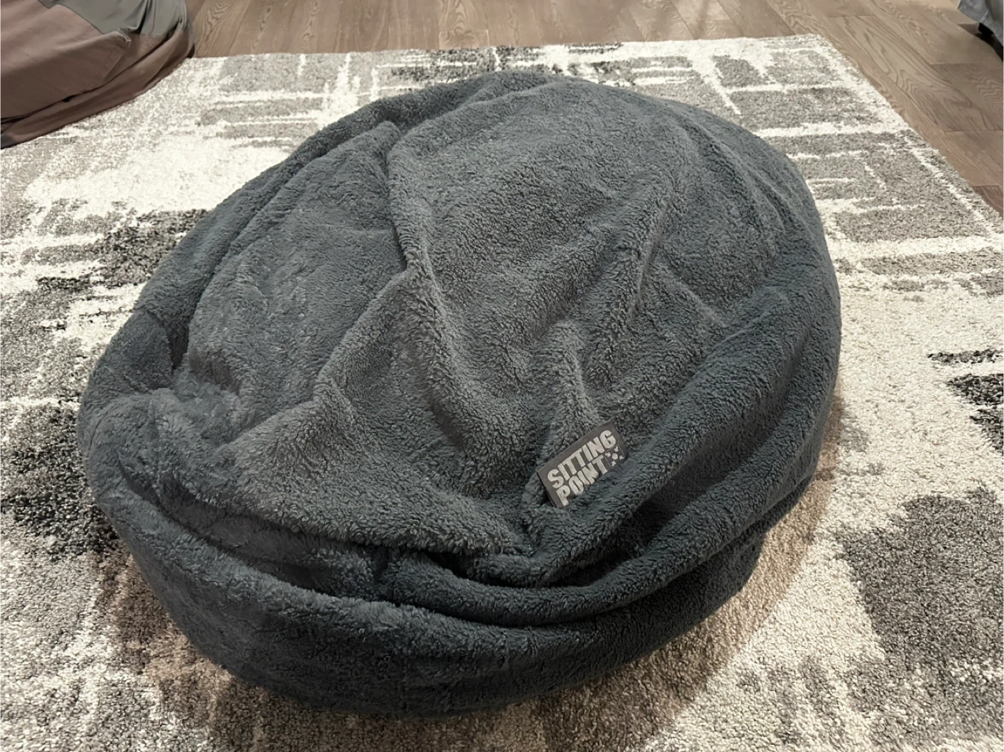 Selling a Sitting Point Fluffy Bean Bag in size XL! This cozy bean bag is perfect for relaxing. It's in great condition and ready for a new home. Originally bought for $170.98, it's a steal!