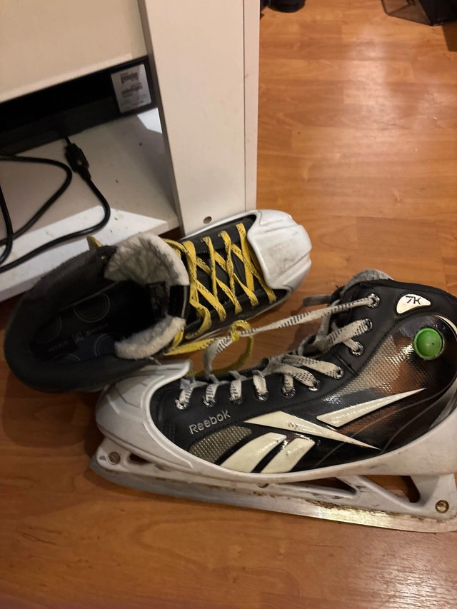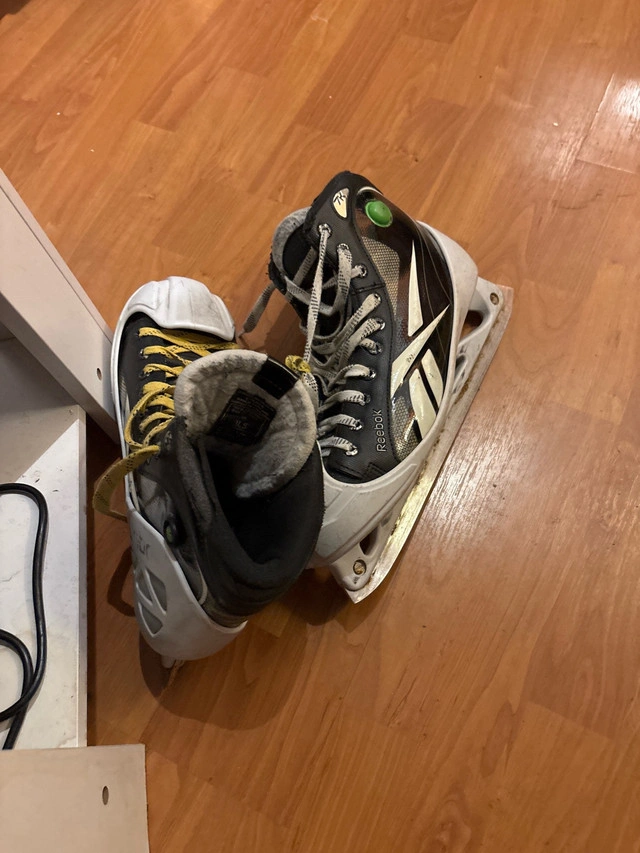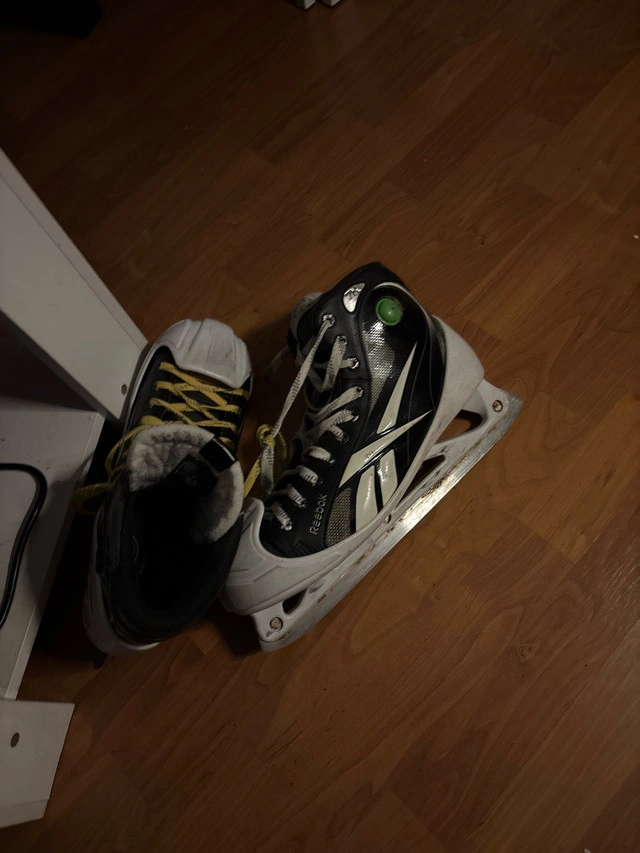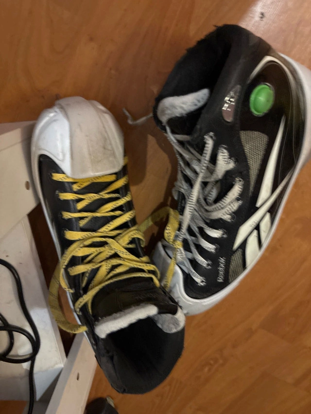 65Selling a pair of Reebok ice skates, size 11.5, suitable for recreational skating or hockey. These are used but still have plenty of glide left in them! Here are some details: * Brand: Reebok * Size: 11.5 US * Type: Ice Skates Finding the right skates can be like finding the right dance partner—a bit tricky but oh-so-rewarding when you do! Don't miss your chance to waltz your way to the rink with these. If the ad is up, they're still available!