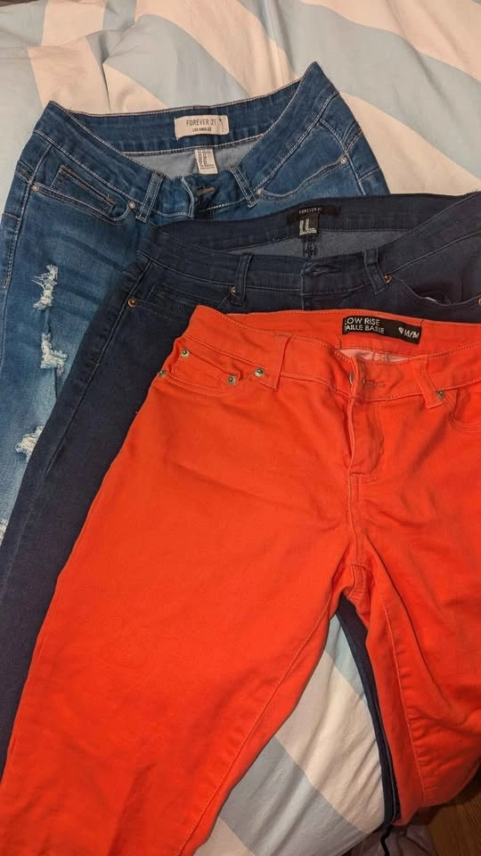 Gently used condition. 3 pairs, 2 are from Forever 21. All 3 fit size 27, stretchy fit, slim fit. Selling as a lot for $10. No try ons.