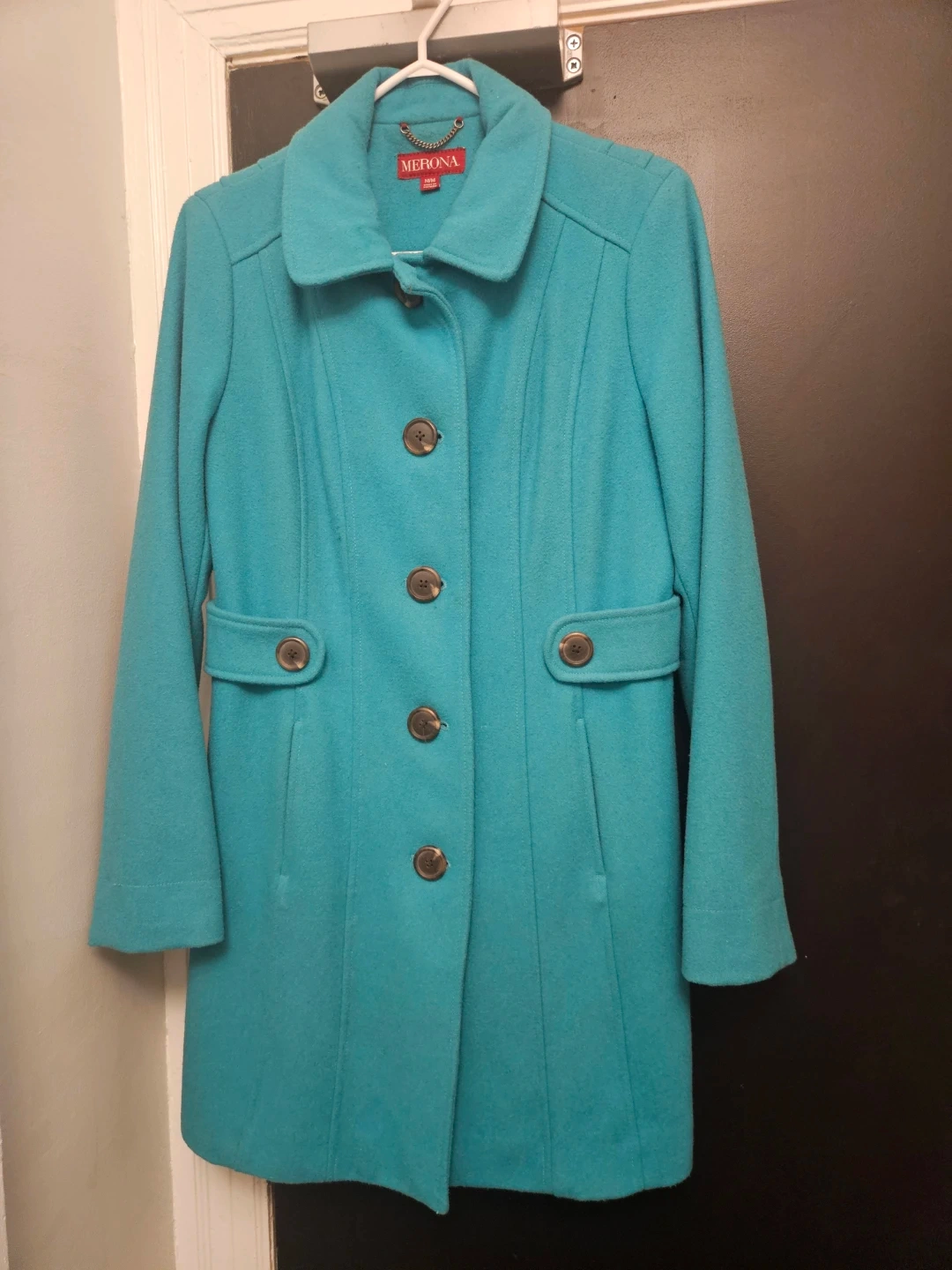 76Selling a Merona women's coat in size medium. It's a lovely teal colour and in good condition.