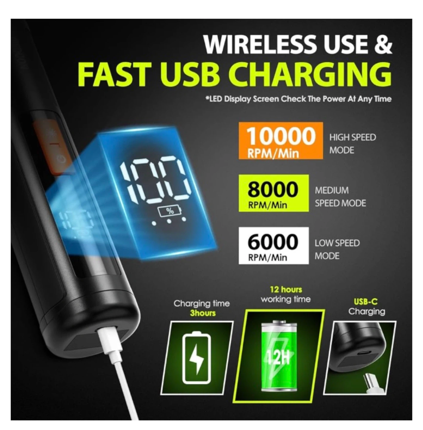 This Iredoon pet nail grinder is designed for quiet trimming with ultra-light vibration. It features wireless use and fast USB-C charging, offering up to 12 hours of working time. The grinder includes a unique dustproof cover that effectively collects nail grinding dust.