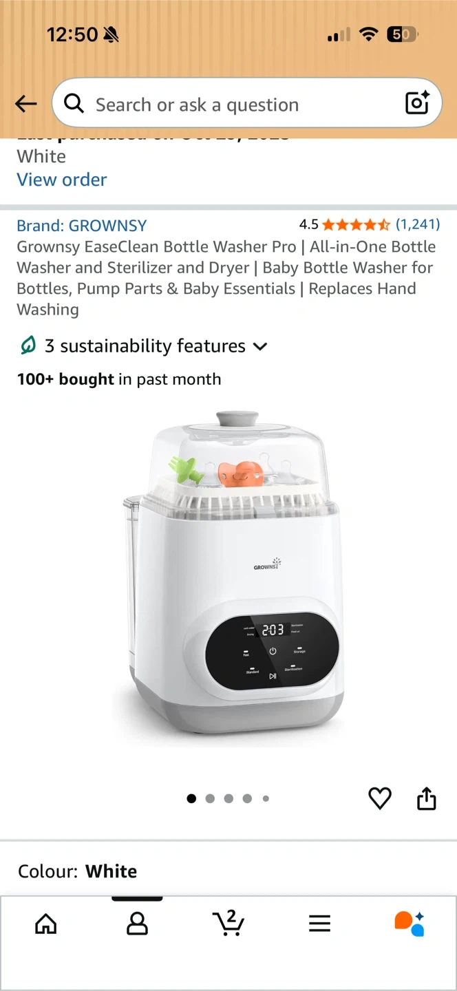 This is the Grownsy EaseClean Bottle Washer Pro. It washes, sterilizes, and dries bottles and baby essentials. Great for busy parents!