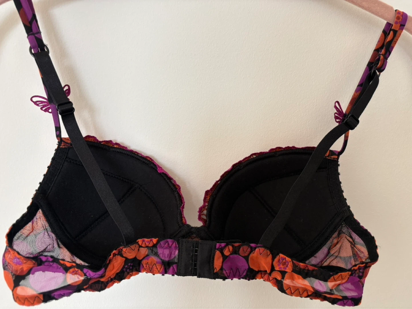 Aubade Black Bra with Orange & Purple Floral Embroidery