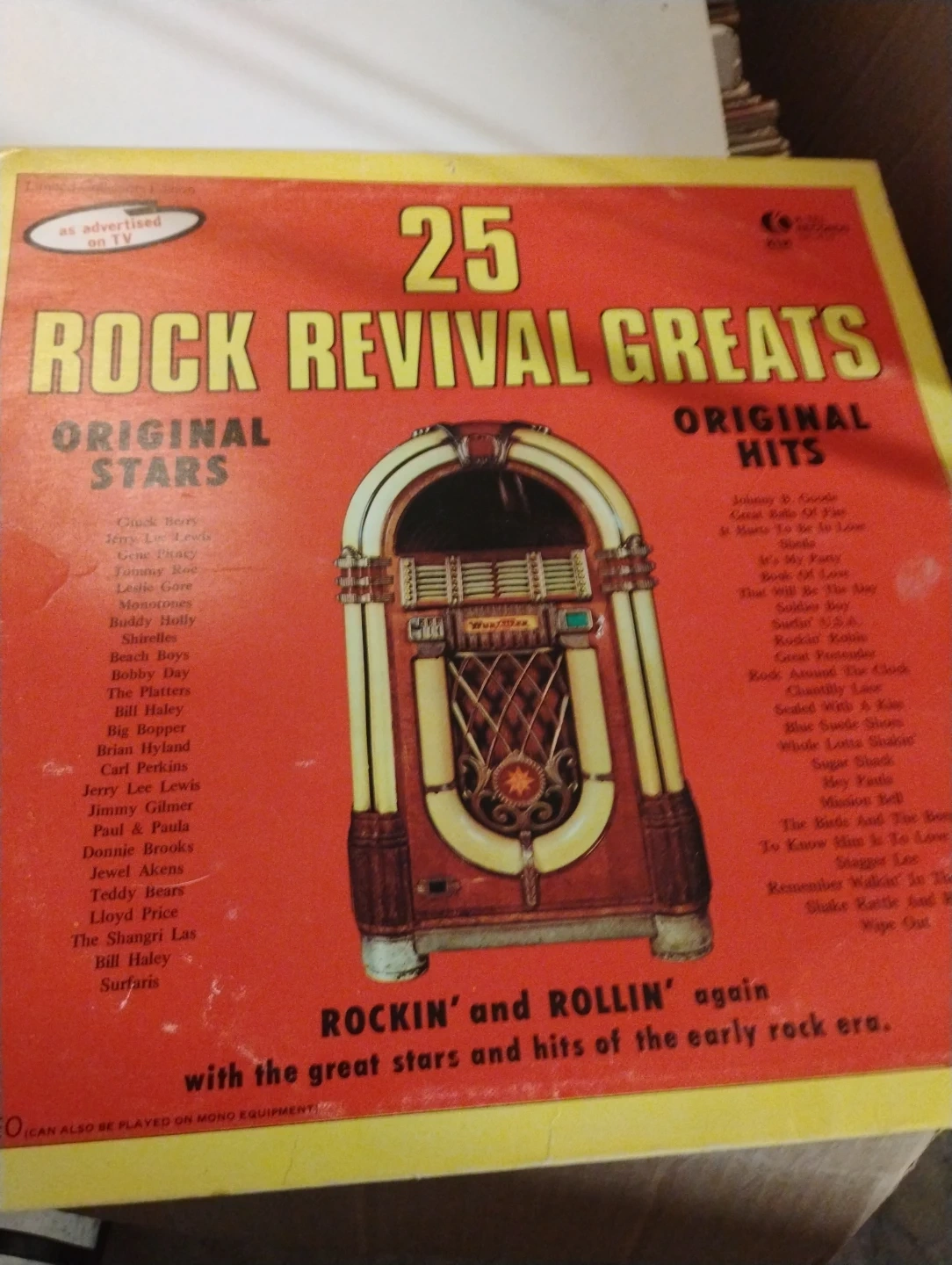 Selling a vintage vinyl record titled '25 Rock Revival Greats'. This record features original stars and original hits from the early rock era. Perfect for collectors or anyone who loves classic rock 'n' roll!. Case is a little worn but record in great shape. OBO