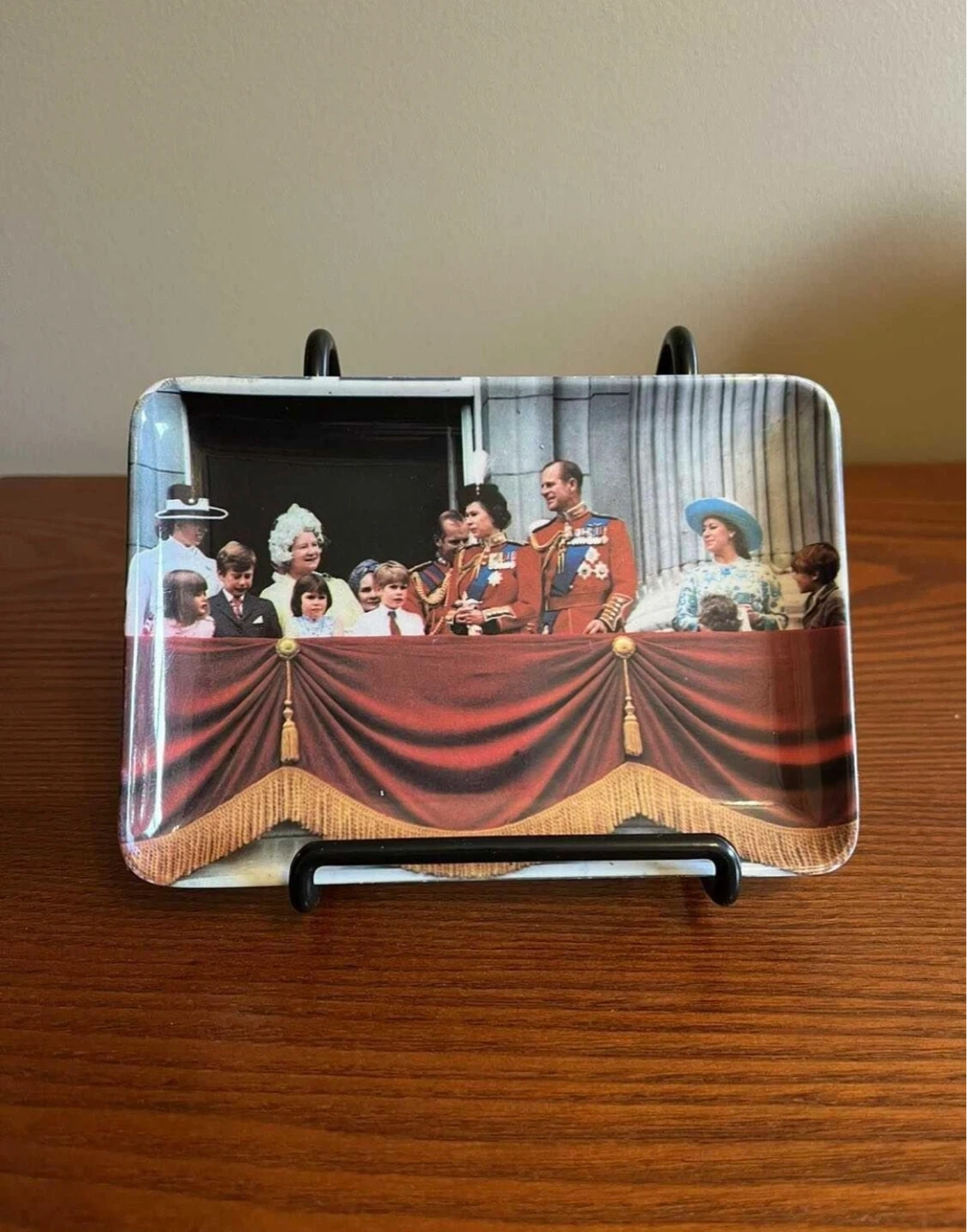 $24 Vintage Queen Elizabeth & Prince Philip Trooping the colour melamine mini souvenir tray.