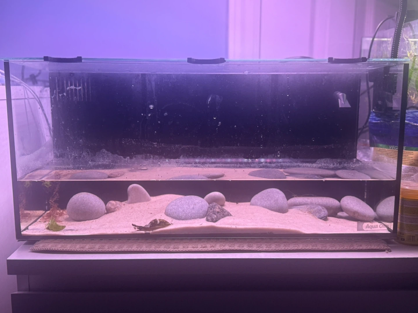 Selling an Aqua One aquarium. It's currently set up with gravel and rocks. Perfect for a small fish or invertebrate setup!