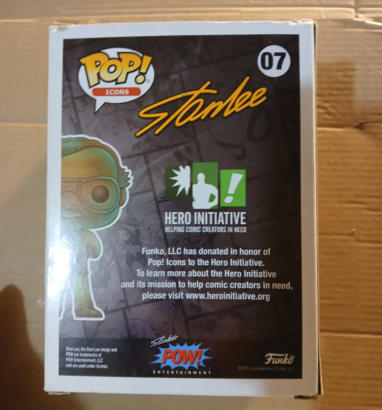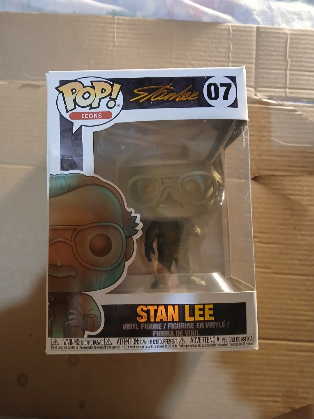 This is a Funko Pop! Icons vinyl figure of Stan Lee, number 07. It's part of the Icons collection. The figure comes in its original box.
