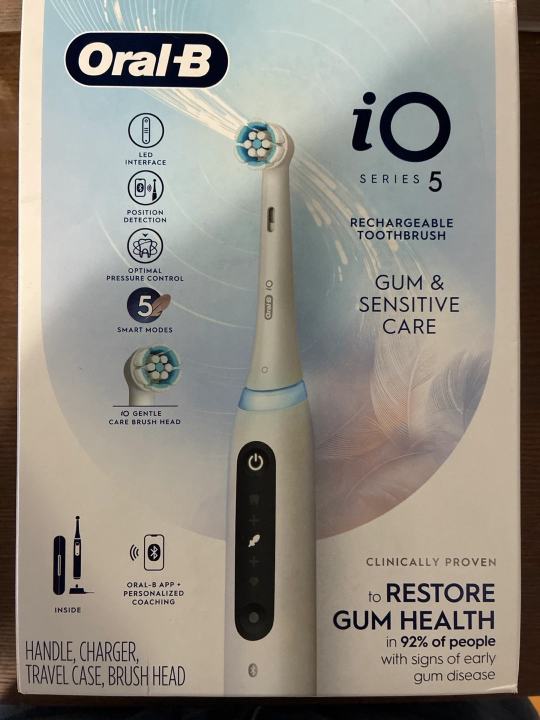 This Oral-B iO Series 5 rechargeable toothbrush offers iO technology for a professional clean feeling. It comes with 5 smart modes and includes a travel case. Clinically proven to restore gum health.