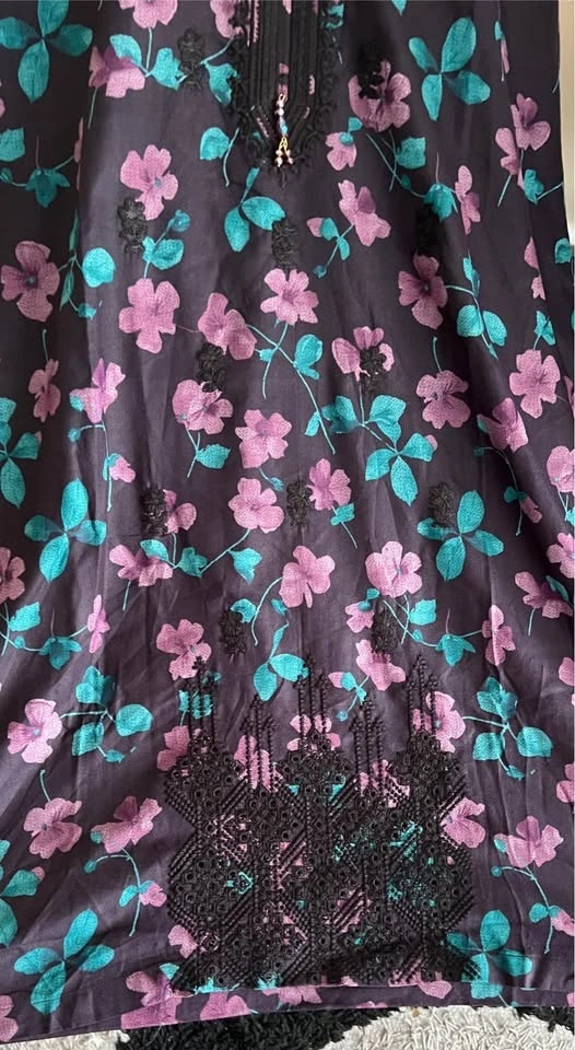 Beautiful 3pcs embroidered and laced suits in vibrant colors and soft linen Dhanak fabric, perfect for any season. Sizes Medium to Large. Check my other listings too.