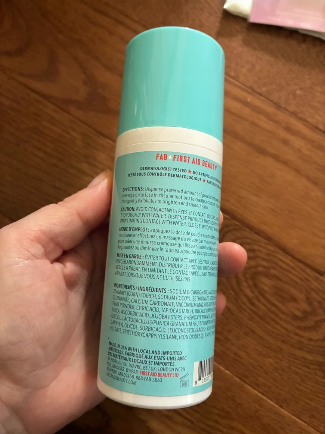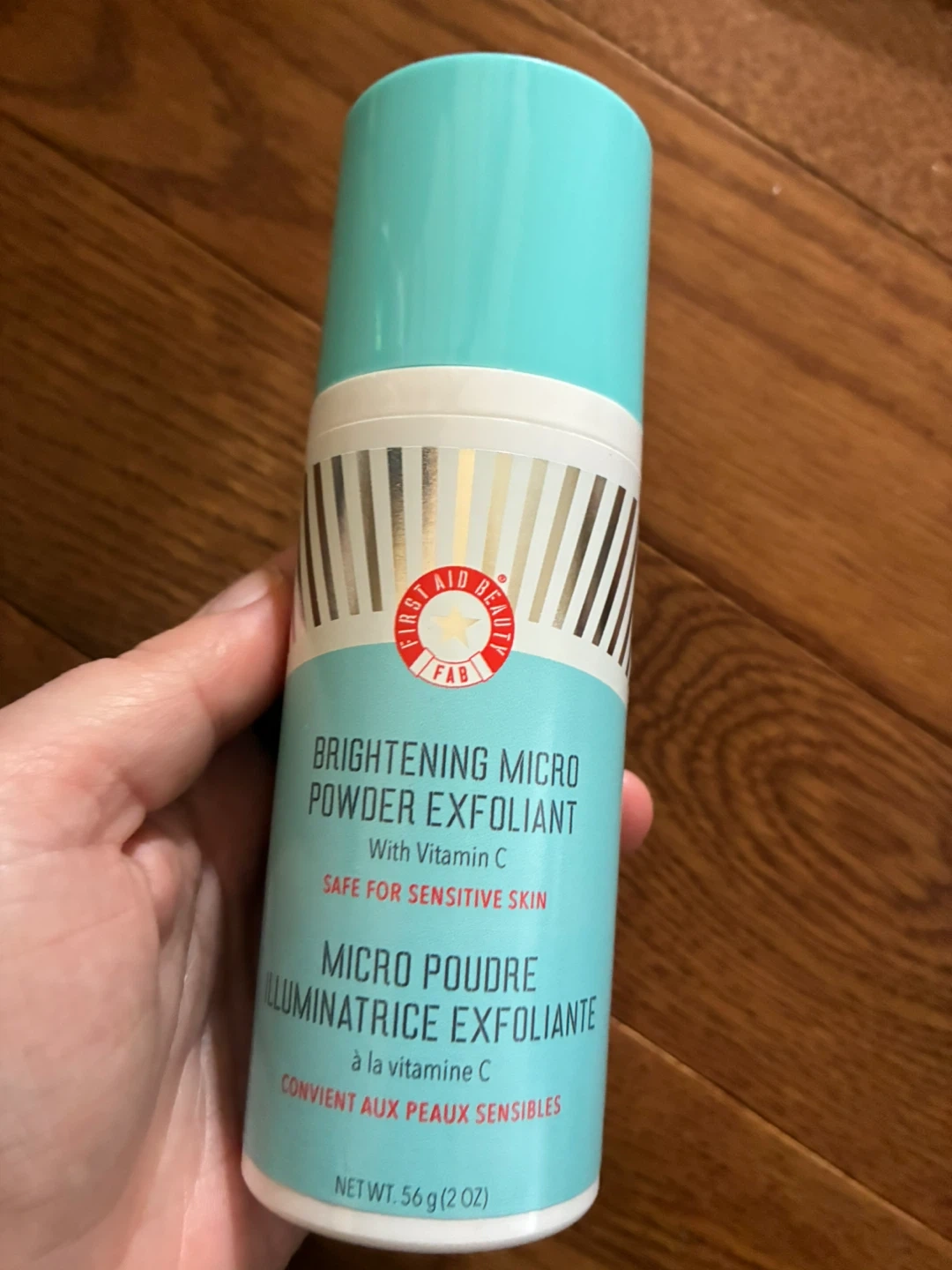 This is the First Aid Beauty Brightening Micro Powder Exfoliant. It's formulated with Vitamin C and is safe for sensitive skin. The net weight is 56g (2 oz).