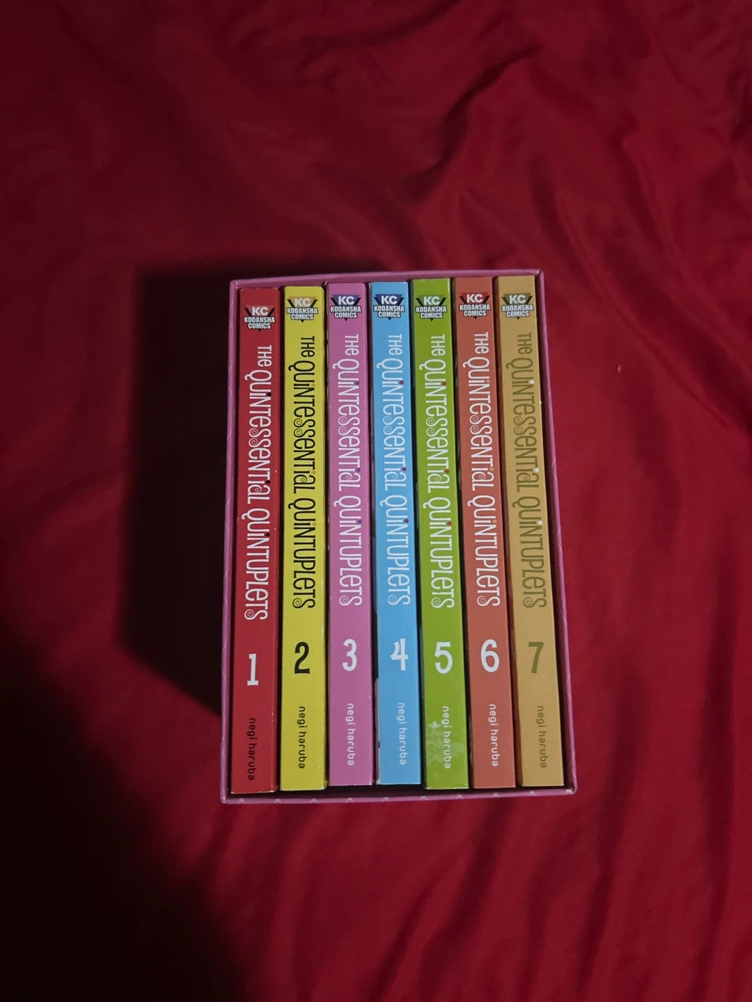 This is a box set of The Quintessential Quintuplets manga, volumes 1 through 7. It's written by Negi Haruba and published by Kodansha Comics. The set includes all seven volumes.