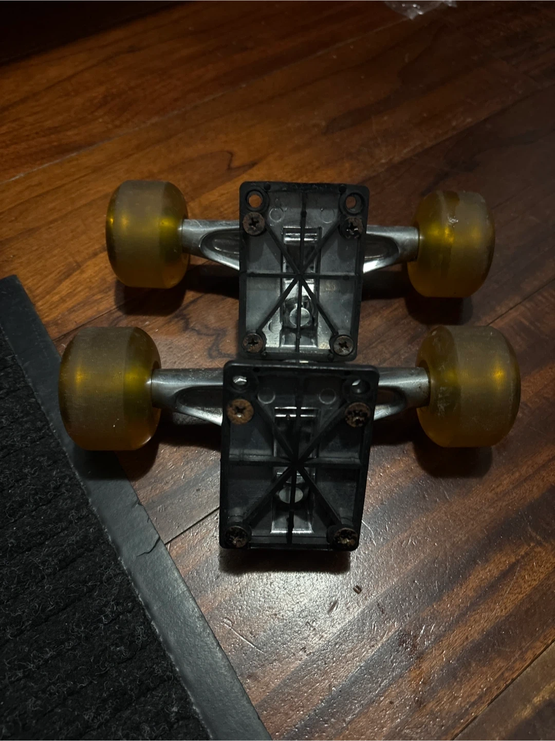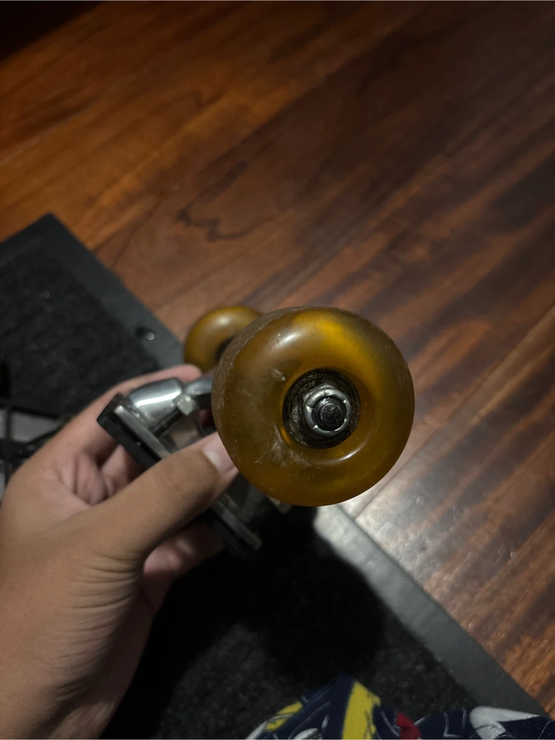 23selling a set of skateboard truck and wheels, used and bearings could be replaced and may need some new screws but other than that its okay