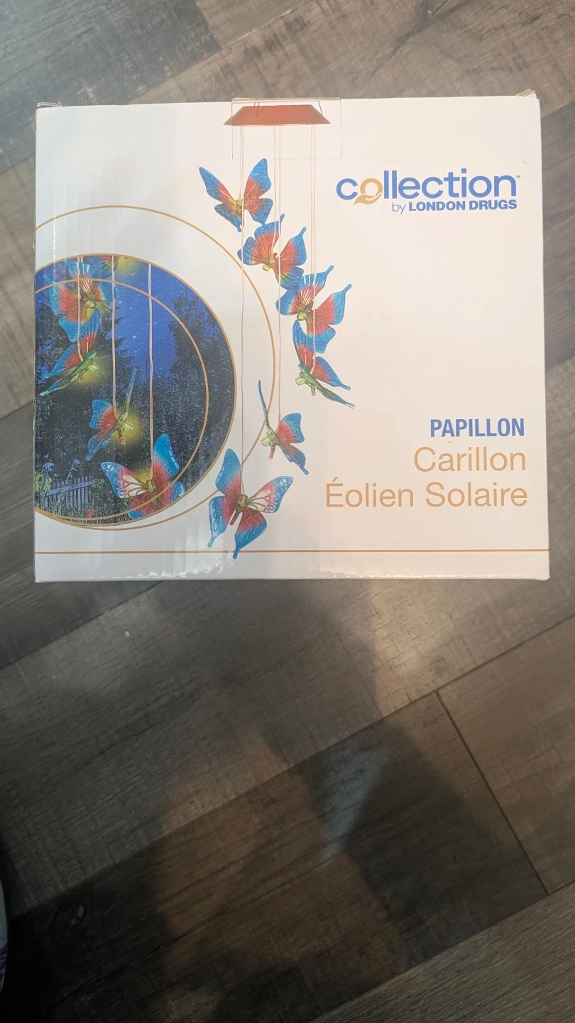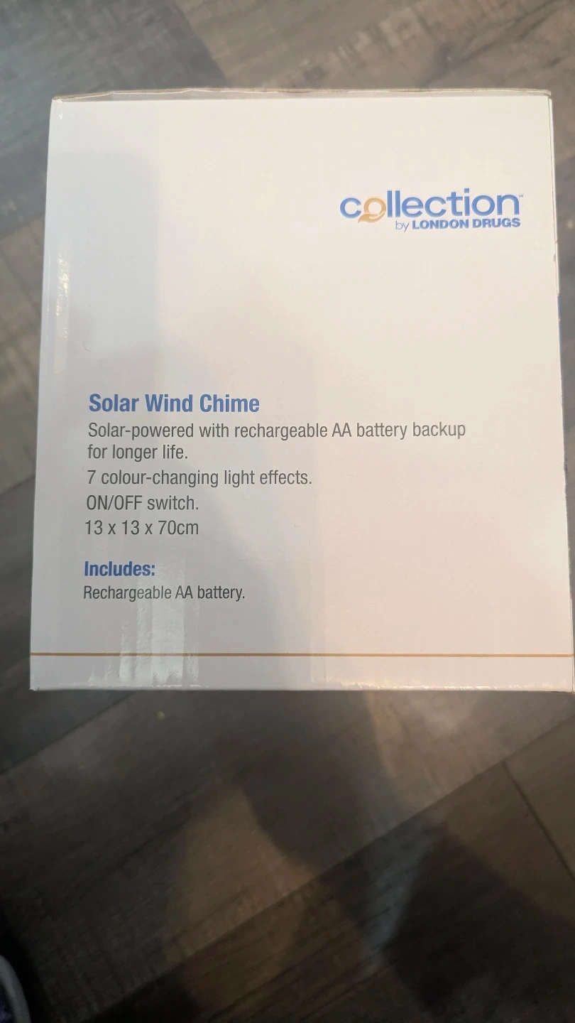 This solar wind chime features a butterfly design. It's solar-powered with a rechargeable AA battery backup and has 7 colour-changing light effects. Includes an ON/OFF switch and a rechargeable AA battery. Dimensions are 13 x 13 x 70cm.