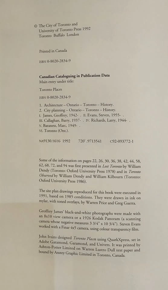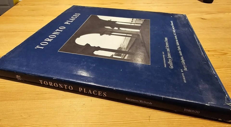 Hardcover copy of Toronto Places: A Context for Urban Design. Photographs by Geoffrey James and Steven Evans with essays by Barry Callaghan, Austin Clarke, Katherine Govier, M.T. Kelly, and Josef Skvorecky (Škvorecký). 107 pages, Hardcover. University of Toronto Press, 1992. ISBN 9780802028341. book, photography, coffee table book, ontario.
