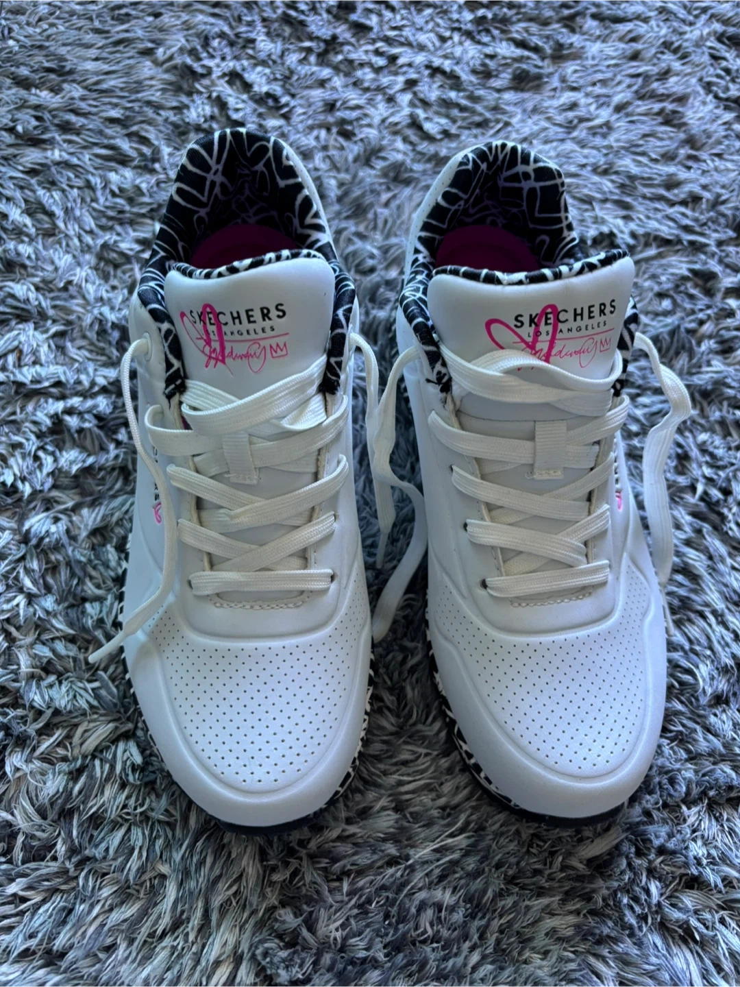 10Selling a pair of women's Skechers D'Lites 7 sneakers in white! They're in great condition and ready for a new home. The size is a women's 7 (US). These sneakers are super comfy and stylish, perfect for everyday wear