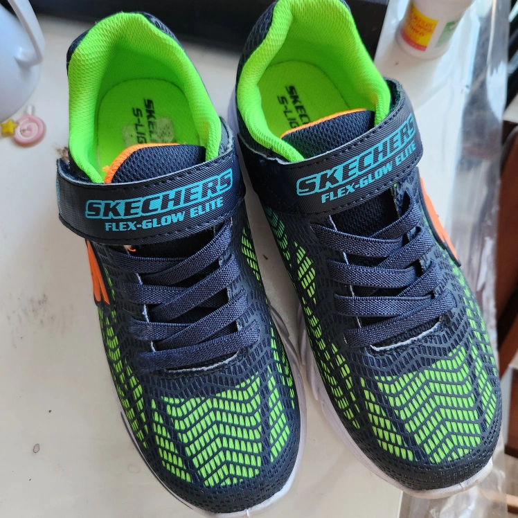 Selling a pair of Skechers Flex-Glow Elite Lights sneakers in US size 3! These are in great shape and ready for a new home. They feature a cool navy and green colour scheme with orange accents. The lights still work great, adding a fun touch to every step Pick up or meet up near at FreshCo Adelaide/Huron