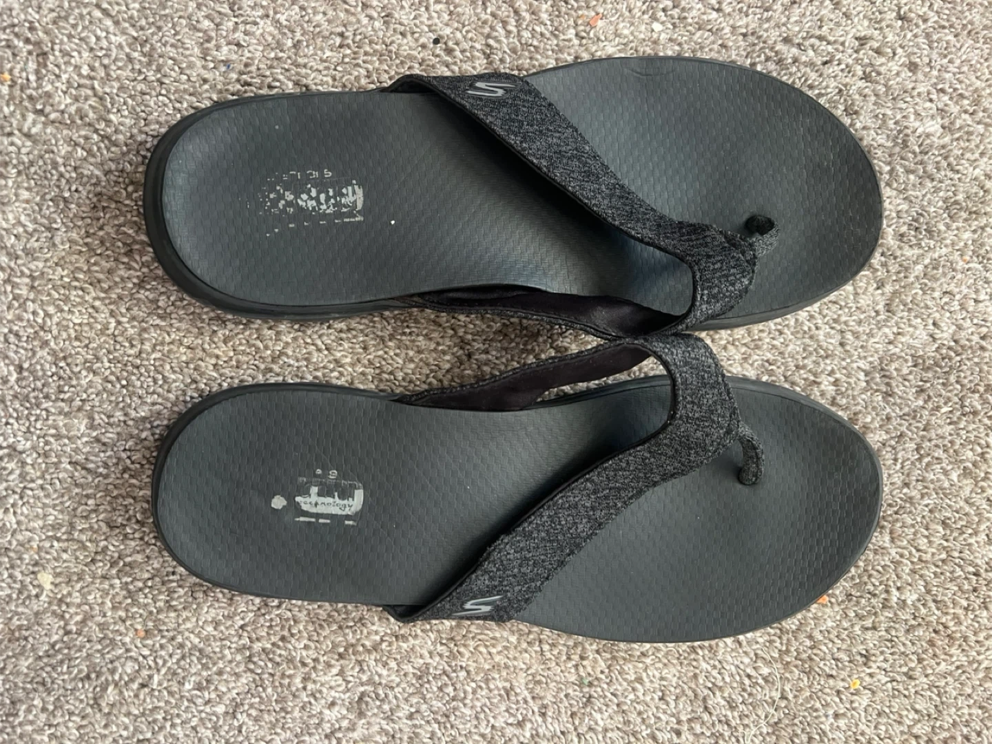 17Selling a pair of Skechers GOga Mat Technology flip flops for women. They are black and in good condition. Great for summer!