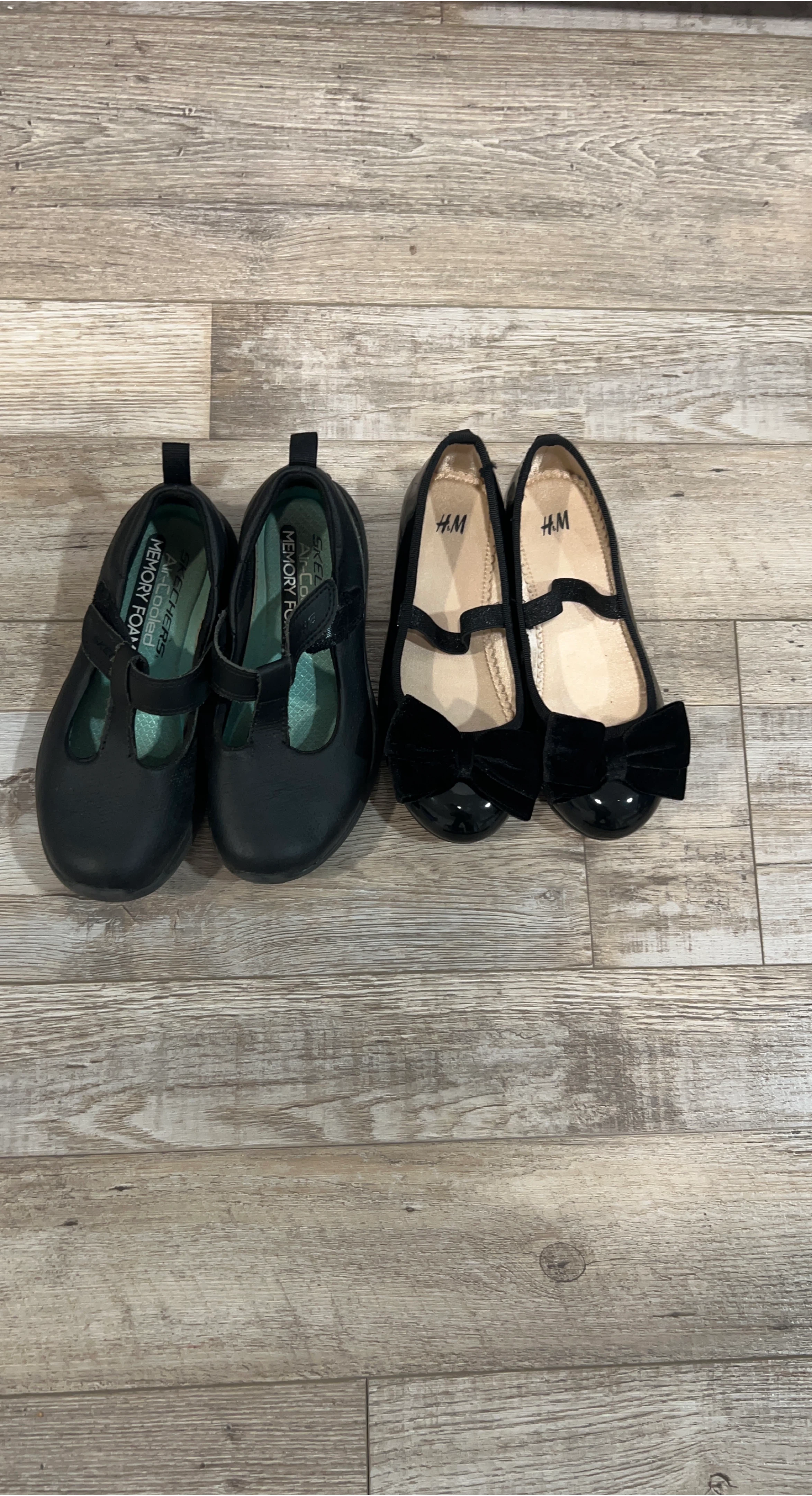 68Two pairs of adorable girls' shoes! One pair is from Skechers with Air-Cooled Memory Foam, and the other is a cute pair from H&M with a bow detail Size 12