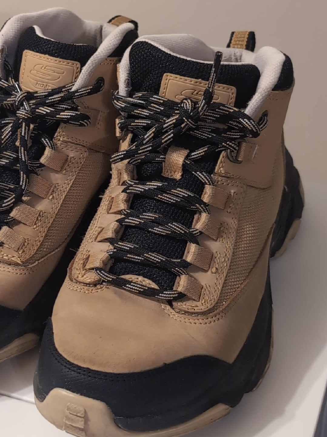 Skechers Men's Relaxed Fit Rester hiking boots. They are a size 7. These boots feature a relaxed fit design for added comfort during long hikes or walks. The upper is a combination of leather and synthetic materials, providing durability and support. The rugged outsole offers excellent traction on various terrains. Great for outdoor adventures or everyday wear! could be worn by woman as well not sure size conversion though.