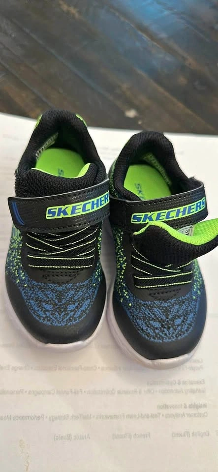 Sketchers toddler sneakers size 5. Sturdy and comfortable, worn only once for less than an hour because I had forgotten about them and hoped they still fit (they did not lol). Pick up at Church and Delaney.