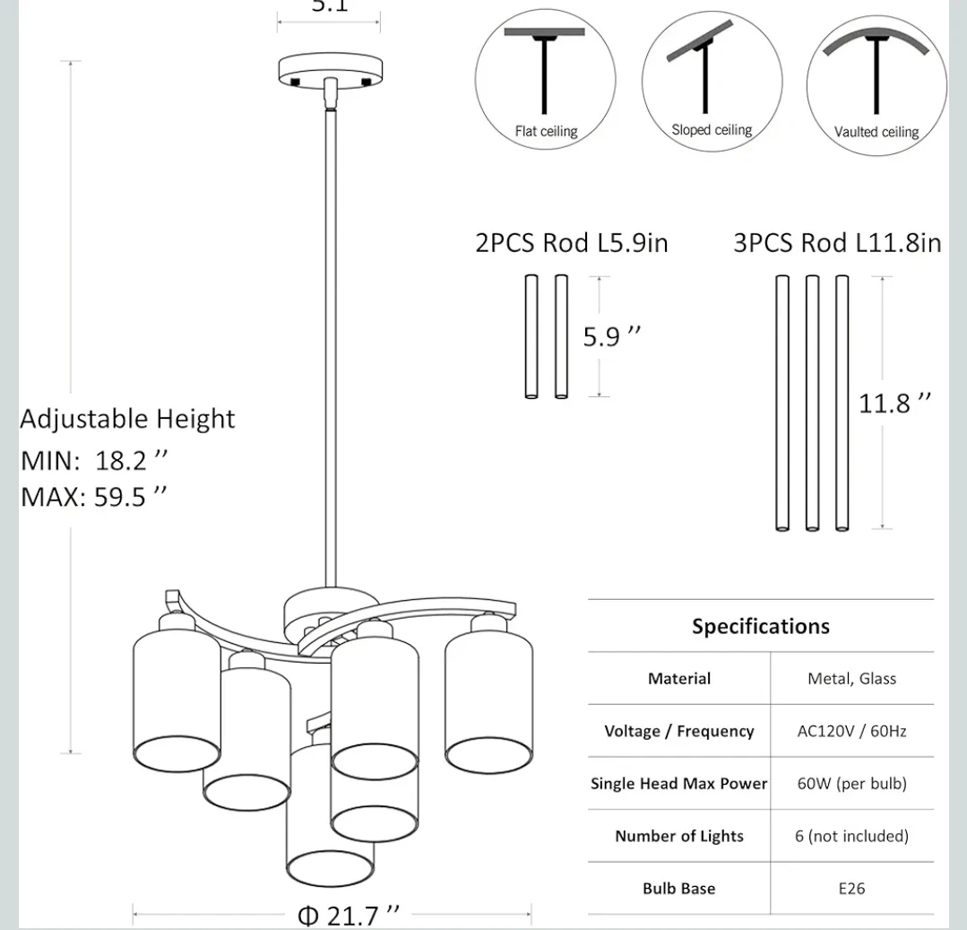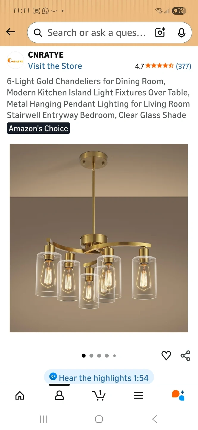This 6-light gold chandelier features a modern design with clear glass shades. It's a stylish pendant lighting fixture. Great for adding a touch of elegance to any room!