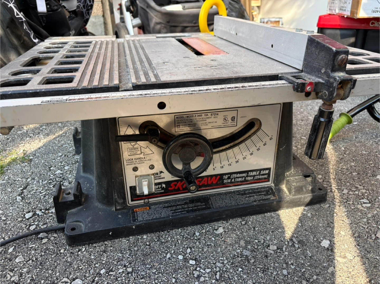 Selling a Skil Saw table saw, model 3400. It's a 10" (254mm) table saw. Great for various woodworking projects!