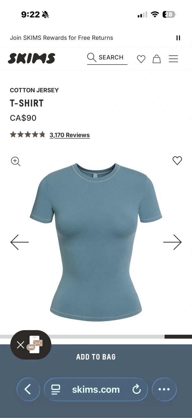 38BRAND NEW WITH TAGS!! Selling a SKIMS cotton jersey T-shirt! Retails for $90 CA.