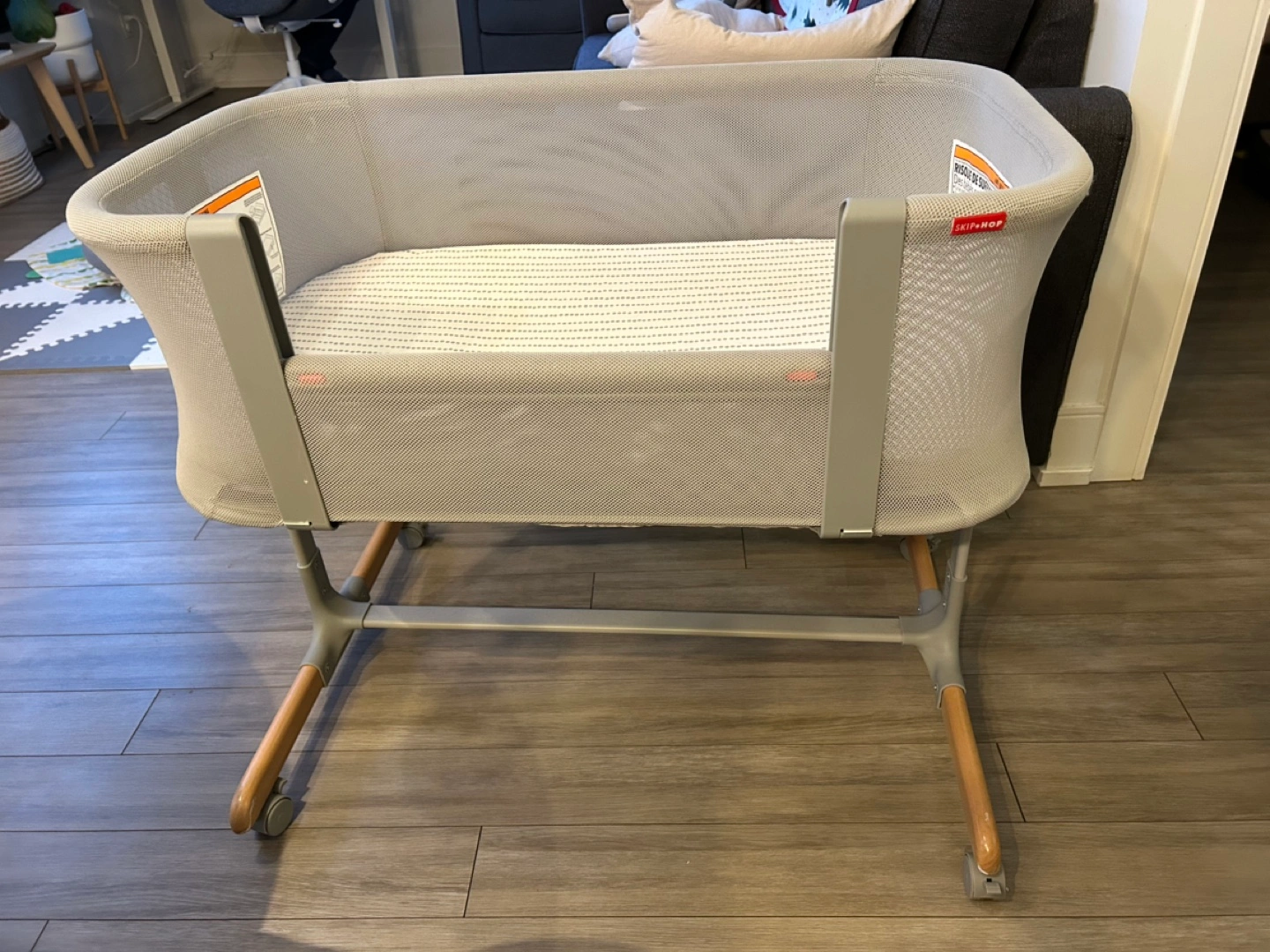 34Featuring two ways to use it: bedside sleeper or stand-alone bassinet, our 2-in-1 sleep solution keeps baby comfy and close. In bedside mode, an easy access door panel lets parents lean over to check in, nurse or comfort baby right beside you. In bassinet mode, baby is snug and set for a sound sleep, while pivot-and-lock wheels make it easy to move from room to room. Mesh sides for breathability and visibility plus a waterproof mattress and soft sheet complete this decor-friendly 2-in-1 must-have.