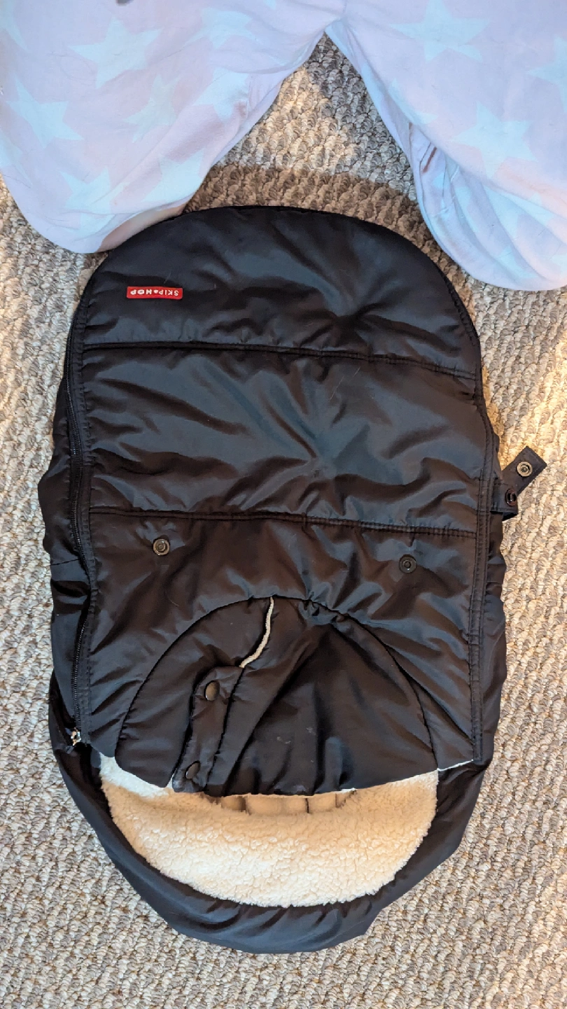 Keep your little one cozy with this Skip Hop Winter Car Seat Cover in black! It's designed to fit most car seats, providing warmth and protection from the elements. The soft lining ensures your baby stays comfortable during chilly days. Originally bought for $57.21. Used with both my kids. literally the best thing I could have purchased for them.
