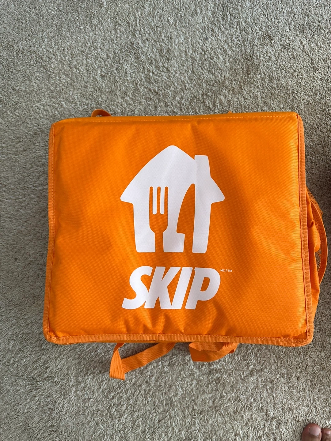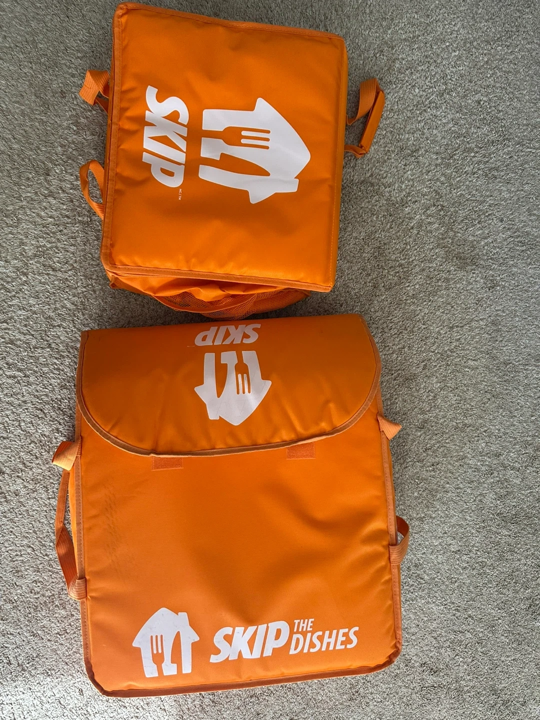 Selling two Skip The Dishes delivery bags! They're orange and in great condition. Perfect for anyone doing deliveries. I’ve never used this thermal bag.