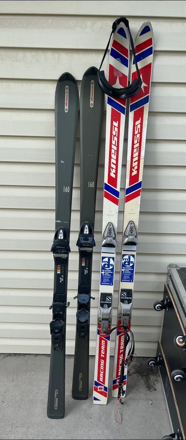 Got from friends but no longer skiing. Nordica 160 cm skis (with bindings): $50 Kneissl 170 cm skis (with Salomon bindings): $70 Ski goggles: $10 All in used but good condition Great starter set or extra gear. $100 for whole set Pickup in Harvest Hills. Delivery in Calgary available. Please contact to discuss.