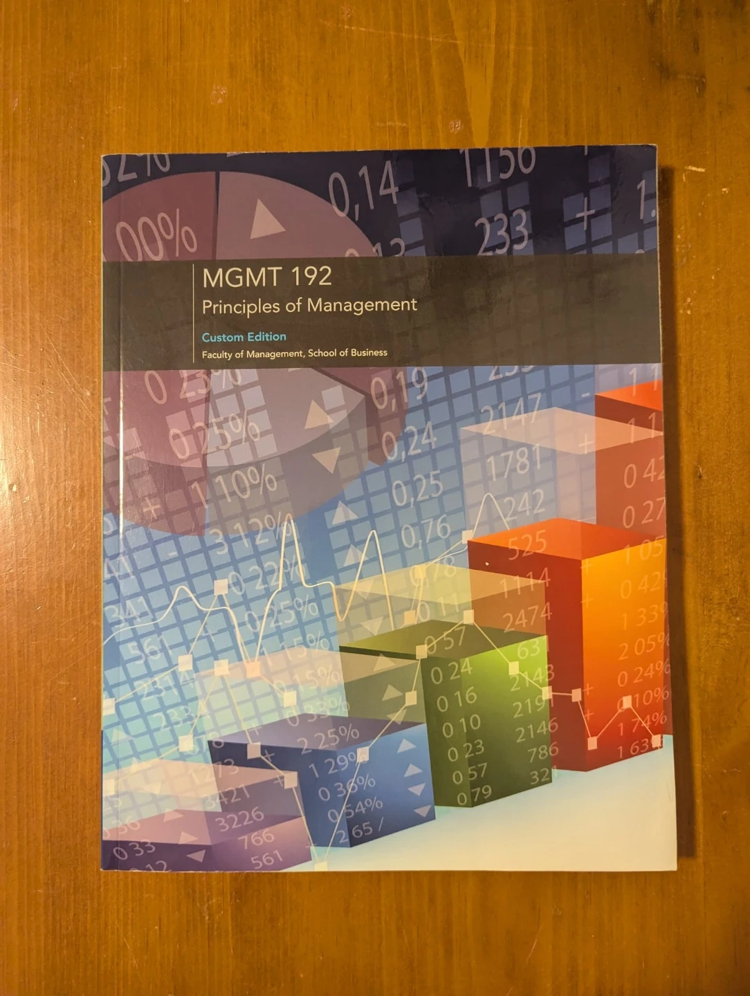 Principles of Management textbook, MGMT 192, Custom Edition. This custom edition is from the Faculty of Management, School of Business. It covers fundamental management concepts.