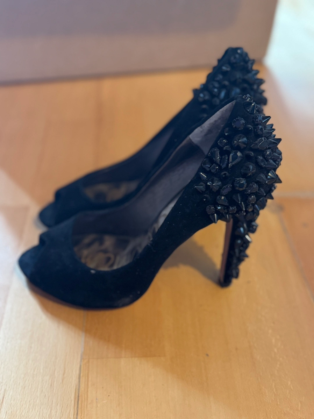 Buy & SellBlack Studded HeelsBlack Studded Heels$45Black suede heels with studded detail. Peep-toe style.Size7BrandSam EdelmanWHERE TO MEETLiberty villageView MapSELLERverifiedKarenLiberty Village750 reviews0 chats·0 favorites·6 viewsSEND CHAT TO SELLERHi Karen! I’m interested in your listing.Hi Karen! I’m interested in your listing.Get the Karrot app to chatSign In to chat