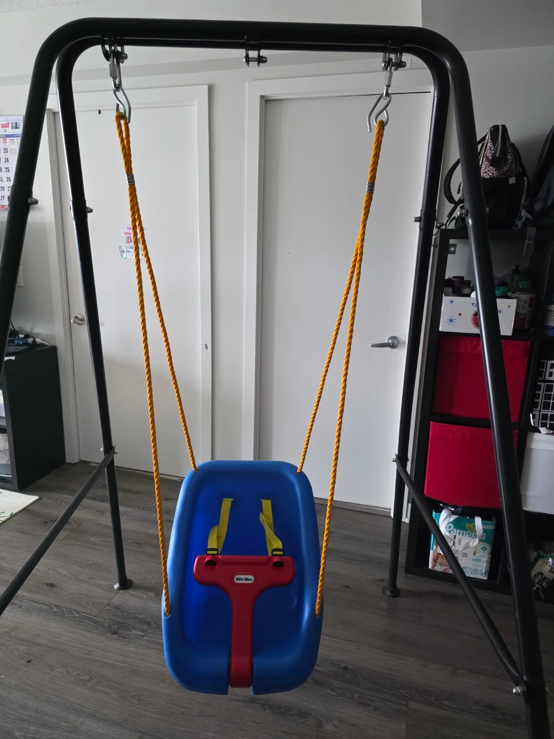 Selling a Hammock Stand Only, Portable Hammock Frame for Indoor/Outdoor, Heavy Duty Foldable Hanging Chair Stand, Easy to Assemble & Store – Black, along with a 2-in-1 baby snug swing seat.