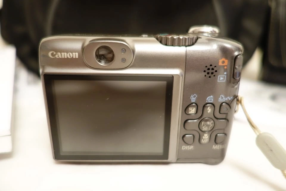 Offering a vintage Canon PowerShot A590 IS 8MP digital camera, popular with retro photography enthusiasts. This unit is in excellent condition and includes English and French instruction manuals, Canon software CD, USB transfer cable, audio/video cables, an original Canon travel case, and a Case Logic camera case. Everything on the camera functions perfectly. The battery door closes properly with no gaps, and there are no signs of battery leakage in the compartment. There are a few minor cosmetic imperfections at the bottom, but no cracks or significant damage. Additional pictures are available upon request. A brand new memory card and a set of batteries are included to get you started. Feel free to message if you have any questions!