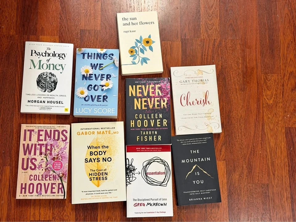 Selling some of my books, all in great condition for just $10 each. Perfect if you’re looking to refresh your reading list. Available titles: It Ends with Us – Colleen Hoover, The Psychology of Money – Morgan Housel, When the Body Says No – Gabor Maté, Things We Never Got Over – Lucy Score, Essentialism – Greg McKeown, Never Never – Tarryn Fisher, The Sun and Her Flowers – Rupi Kaur, The Mountain Is You – Brianna Wiest, Cherish – Gary Thomas.