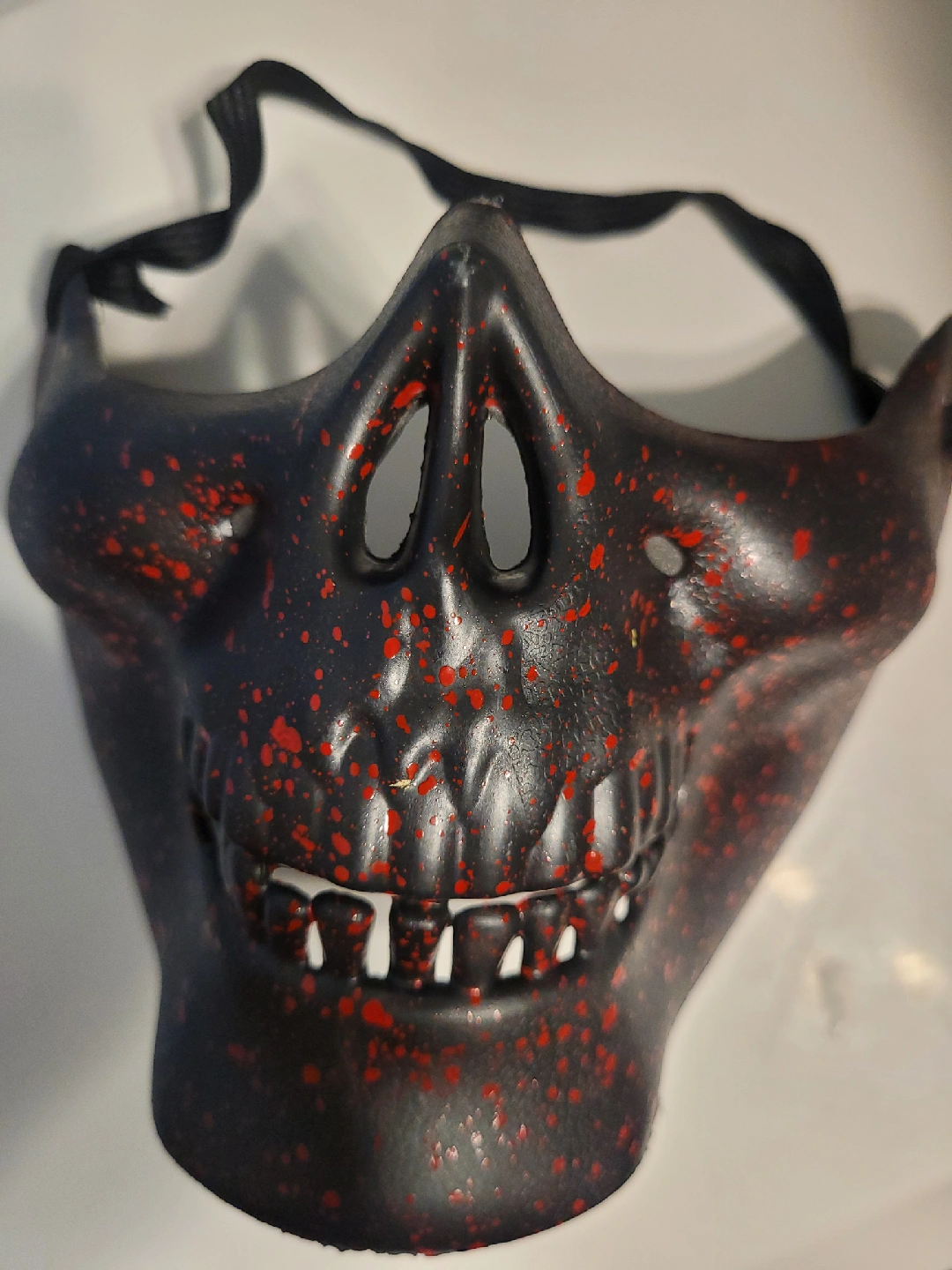 🥕Selling a skull face mask in black with a red splatter design. 🥕 It has an adjustable strap AND soft foam in the nose area, for an hours long comfortable fit. 🥕 Perfect for costumes or themed events!