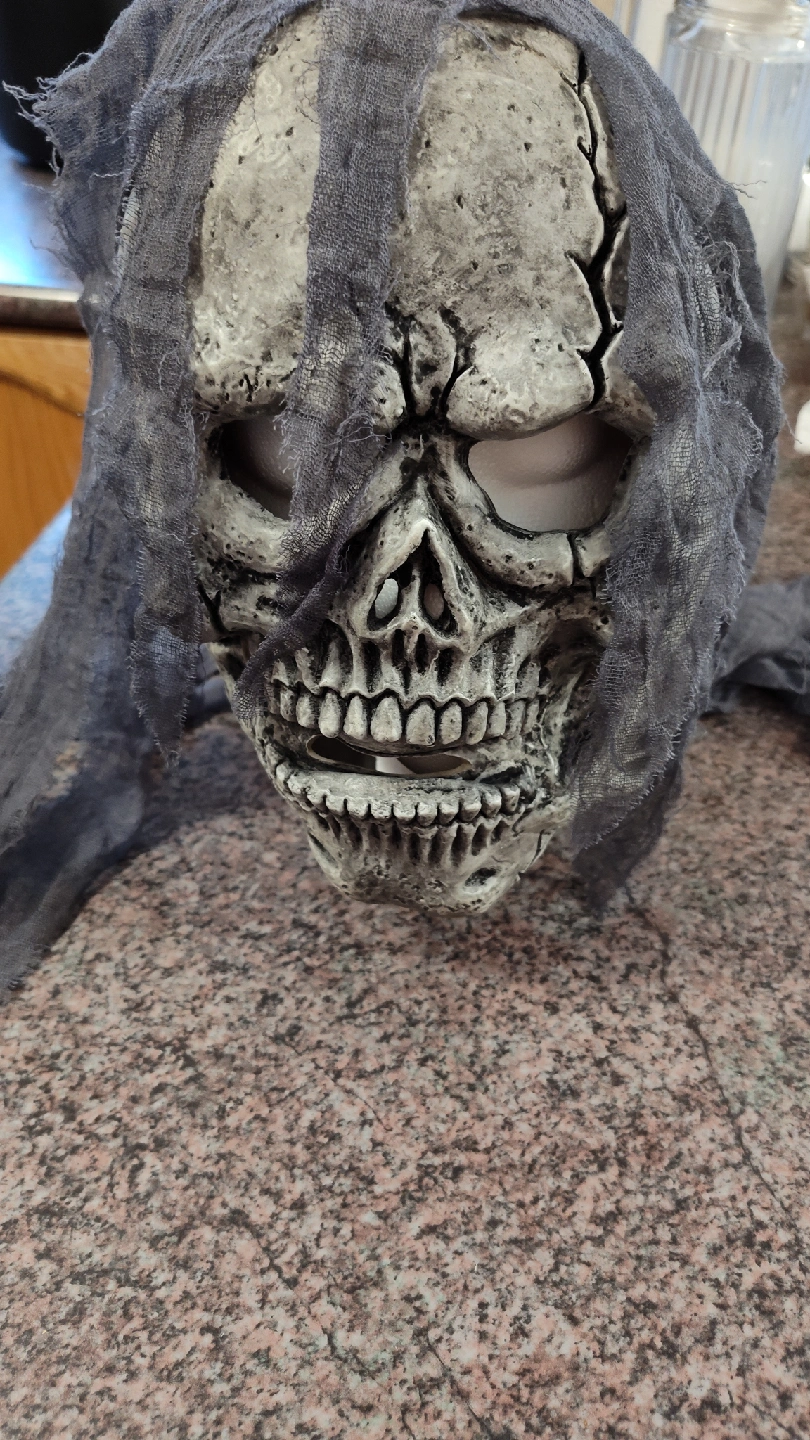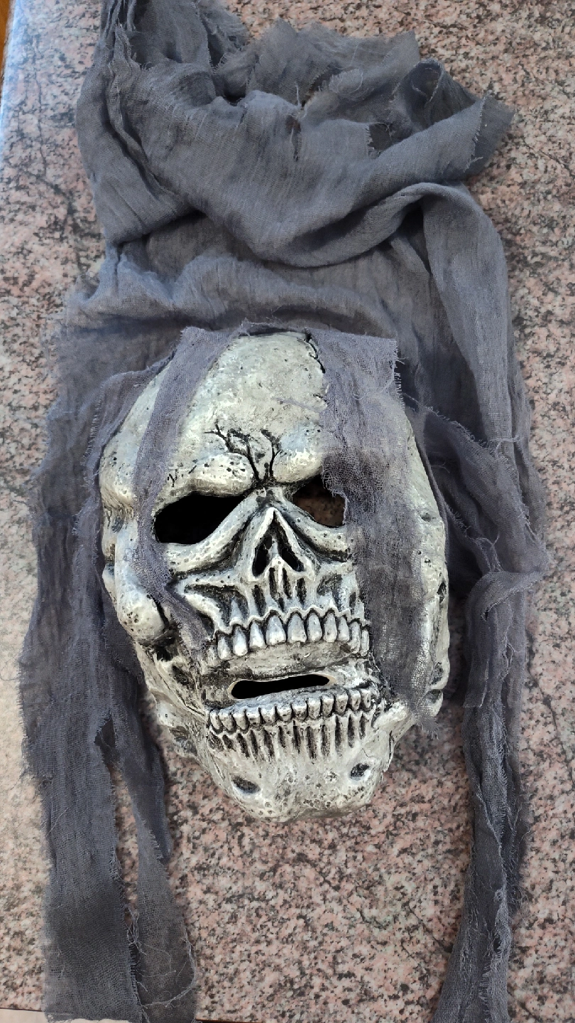 Selling a skull mask with grey cloth. It's in good condition and perfect for Halloween or costume parties. pick up in Lisgar area of Mississauga.