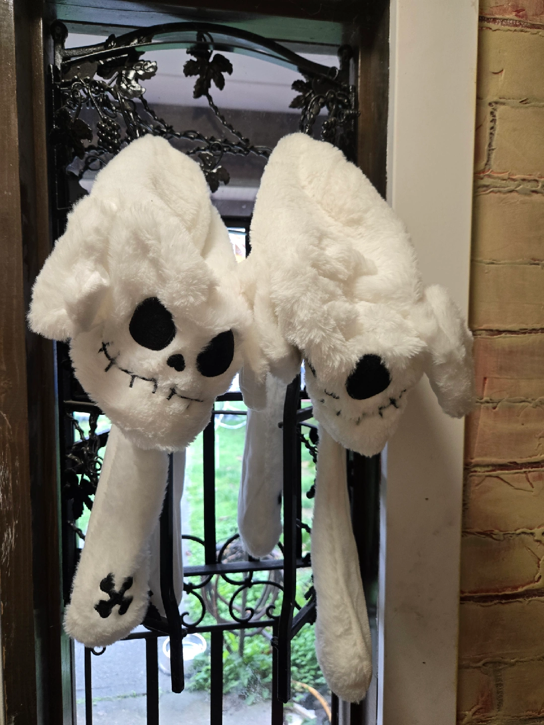 32Selling a super cute skull plush hat! It's white and fluffy, and the ears move when you squeeze the paws. Perfect for Halloween or just being fun and cozy! 15 each