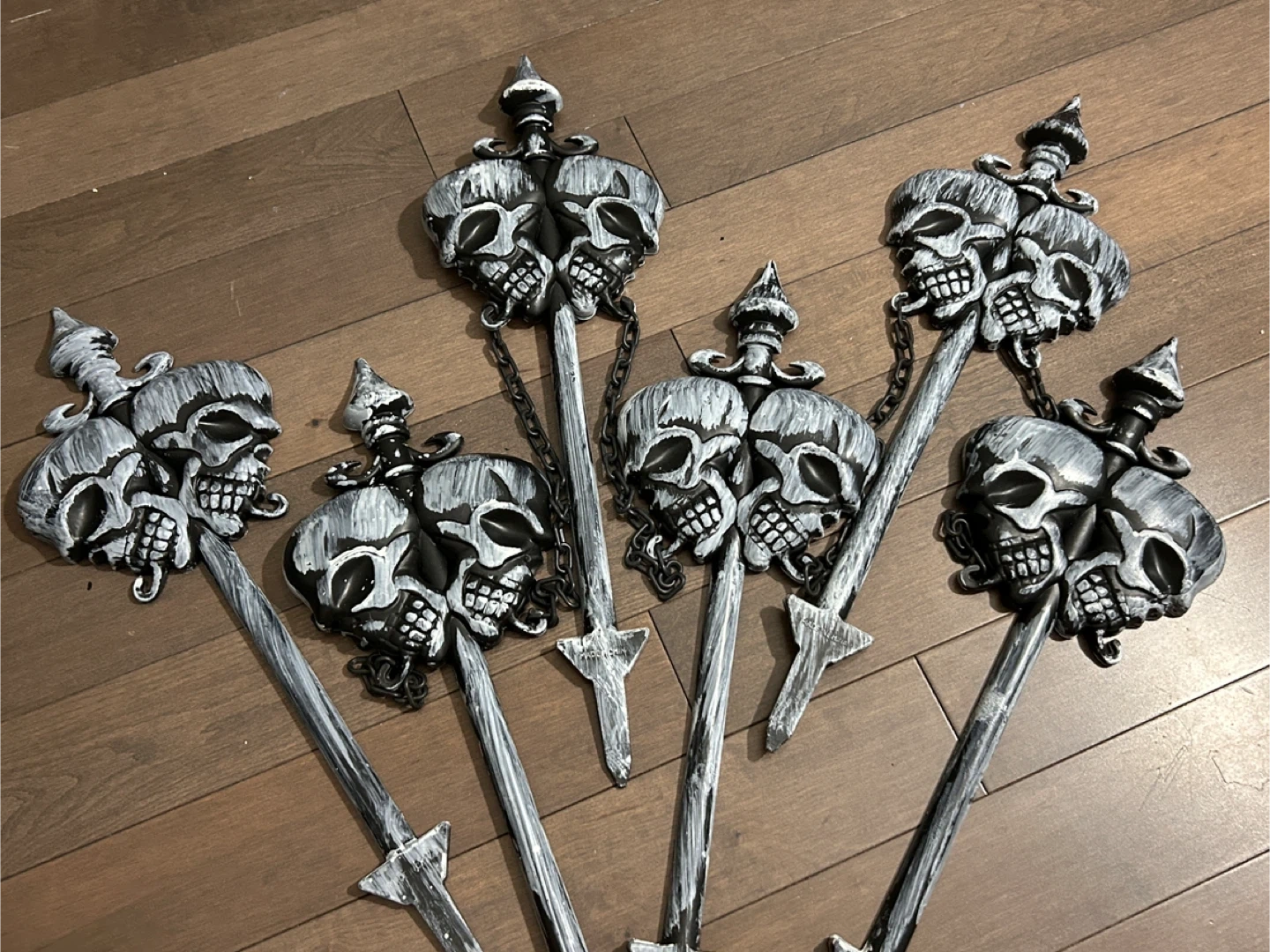 Selling a skull scepter, perfect for Halloween decorations or costume parties! It features a unique skull design with a chain accent. Great for adding a spooky touch to any event or collection