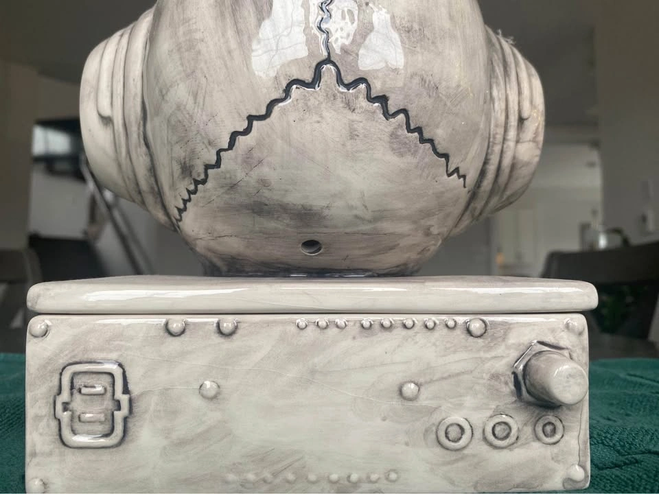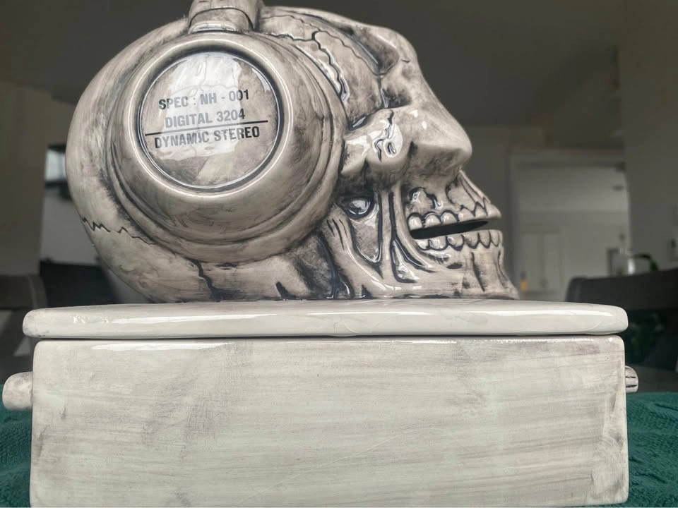 Never used functionally just as a figurine. Smoke comes out the mouth and the top of the head /headphones. Size: 7in wide 7.5in deep Stands 8.5in tall. Purging a collection of super cool incense chambers. See my other listings.
