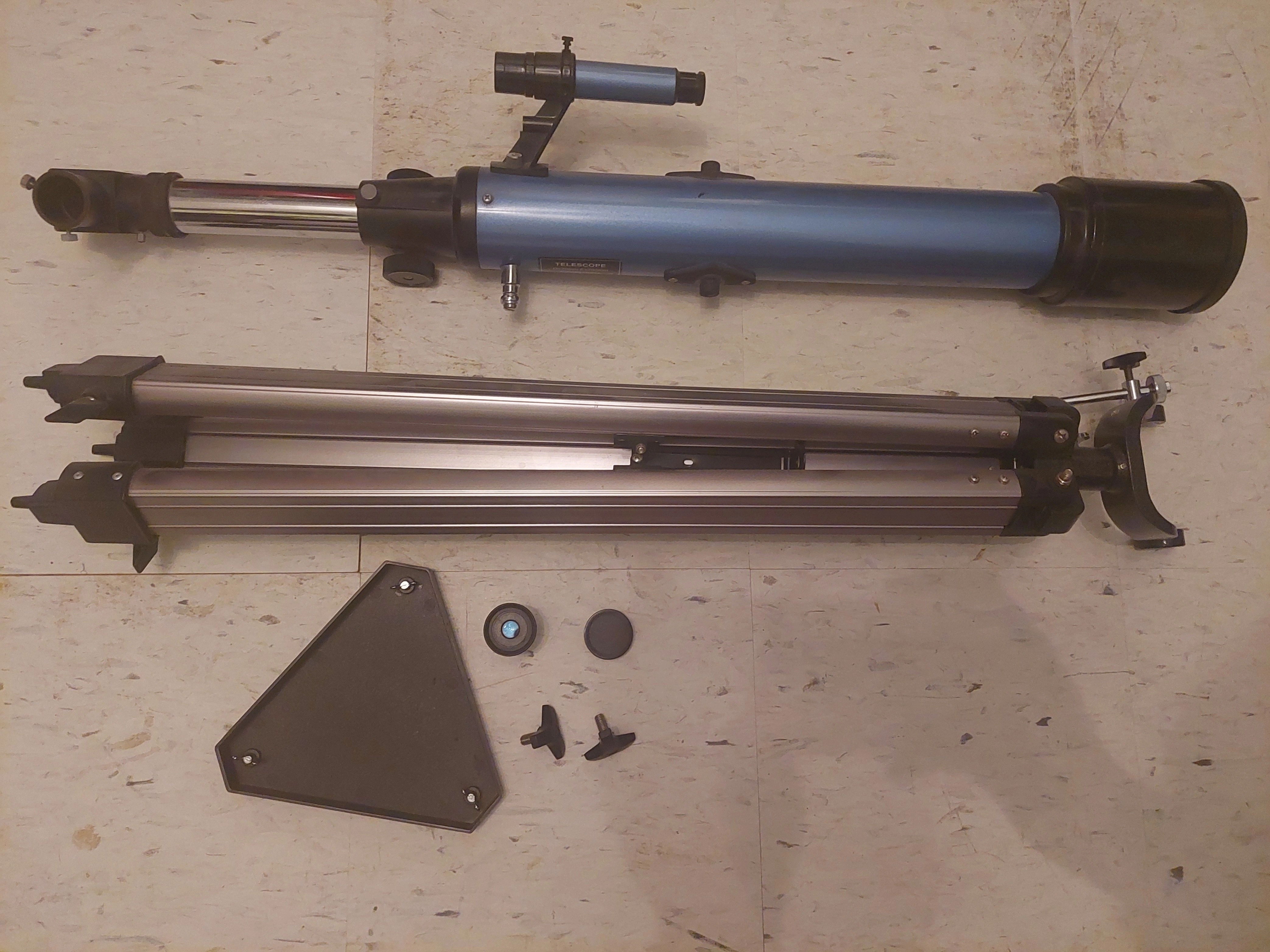 15Great beginner telescope for exploring the moon, planets, and night sky! Includes all main components and tripod. Everything is in good condition and ready for use. Specifications: - Brand: Sky-Watcher - Type: Refractor telescope - Aperture: 70mm - Focal length: 700mm - Coated optics for clearer images Includes: ✅ Telescope body ✅ Adjustable tripod ✅ Eyepiece ✅ Mounting plate ✅ Lens cap and adjustment knobs Condition: - Optics are clean and clear - The tripod is sturdy and folds properly - Light wear on the tube, no cracks or dents Perfect for beginners, students, or anyone curious about astronomy 🌙 Cash Only! $90 or best offer